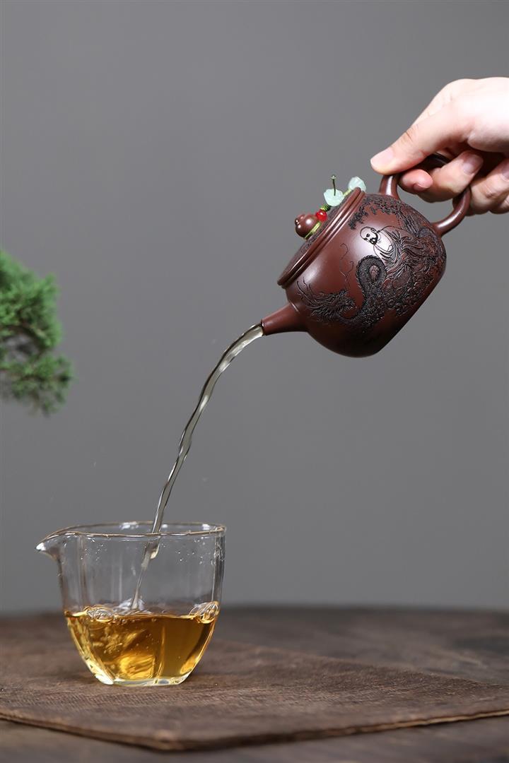 紫砂使用越久,壺身色澤越發光亮照人,氣韻溫雅。紫砂壺長久使用器身會因撫摸擦拭,變得越發溫潤光澤!