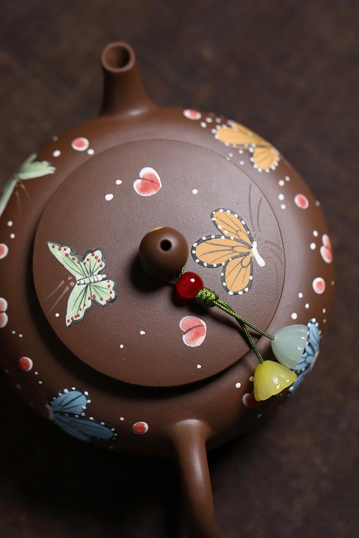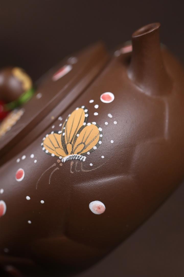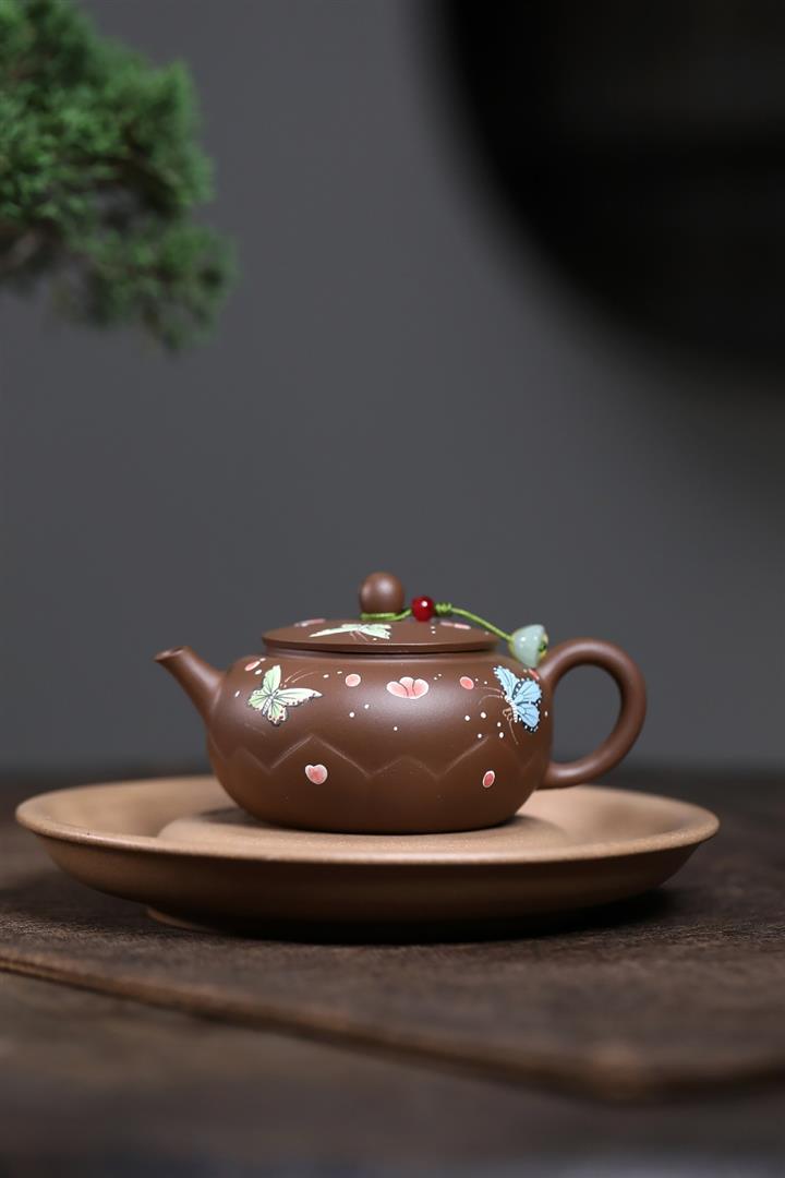 原礦赤金朱泥蝴蝶平蓋扁柿壺POT7644
