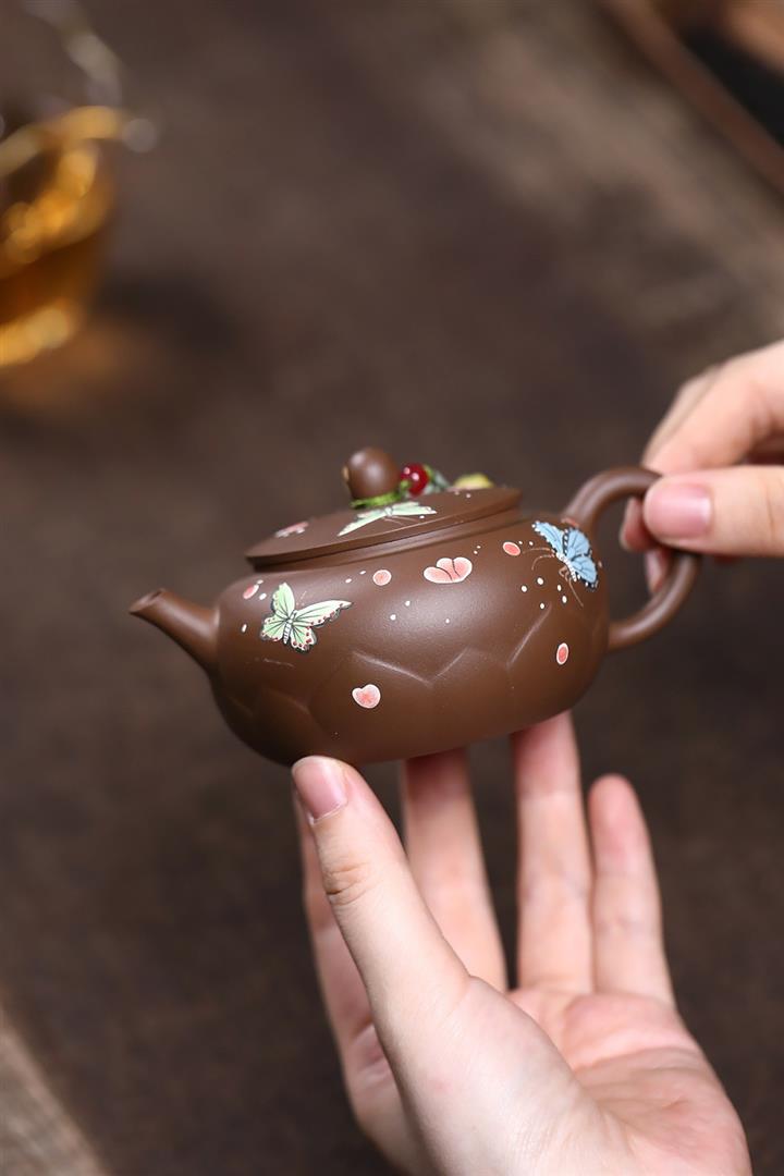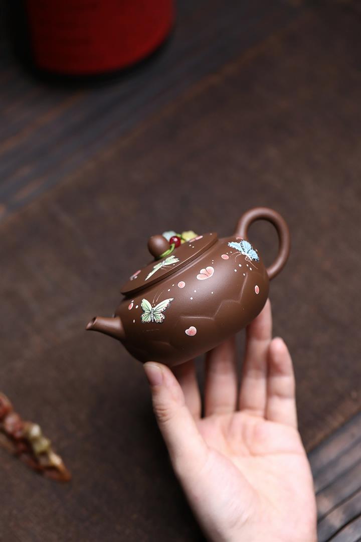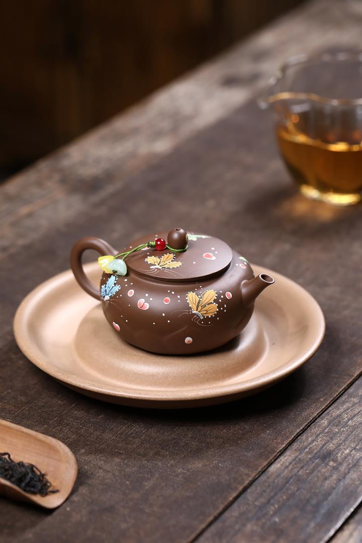 紫砂使用越久,壺身色澤越發光亮照人,氣韻溫雅。紫砂壺長久使用器身會因撫摸擦拭,變得越發溫潤光澤!