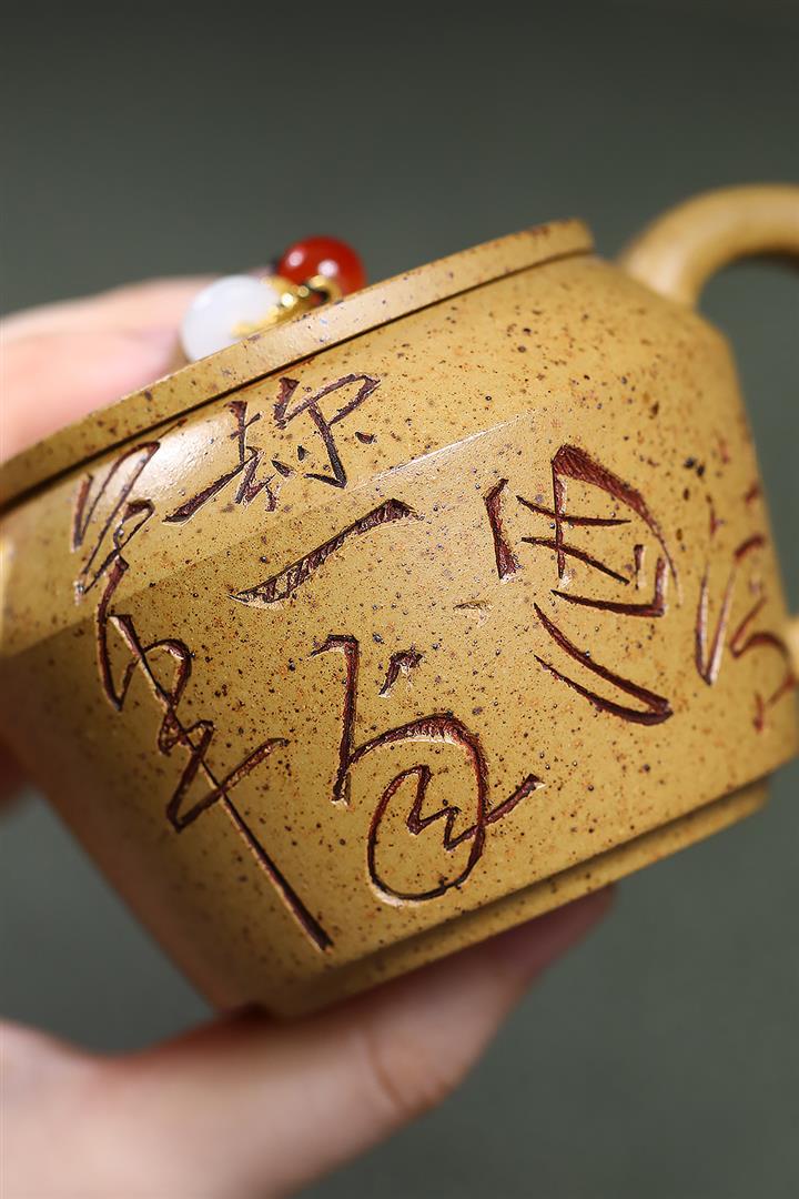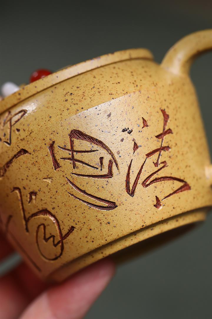 410cc原礦石黃泥彩刻蓬萊勝景茶壺POT8988