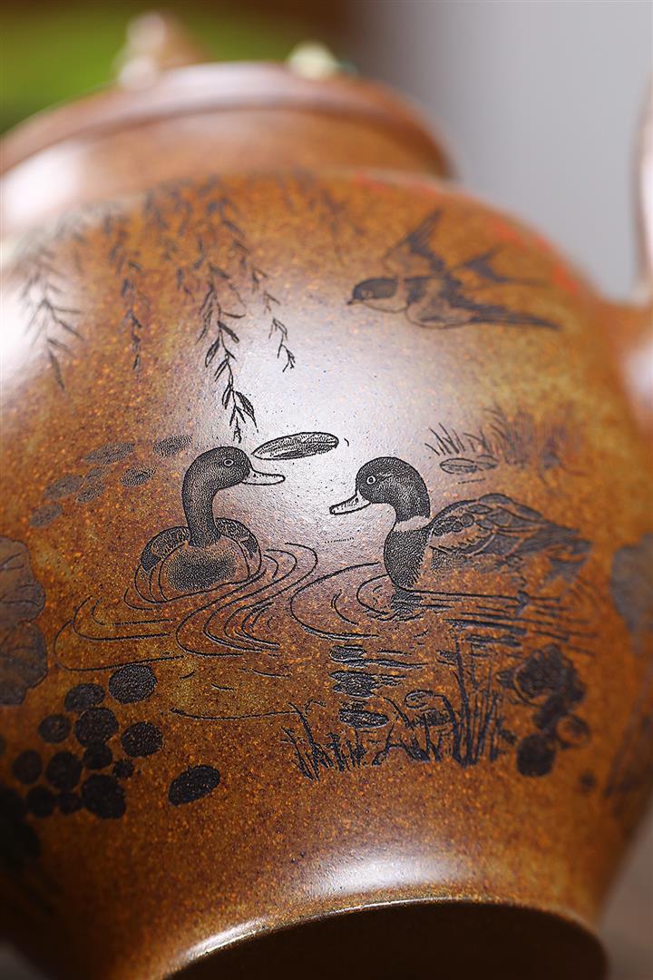 紫砂使用越久,壺身色澤越發光亮照人,氣韻溫雅。紫砂壺長久使用器身會因撫摸擦拭,變得越發溫潤光澤!