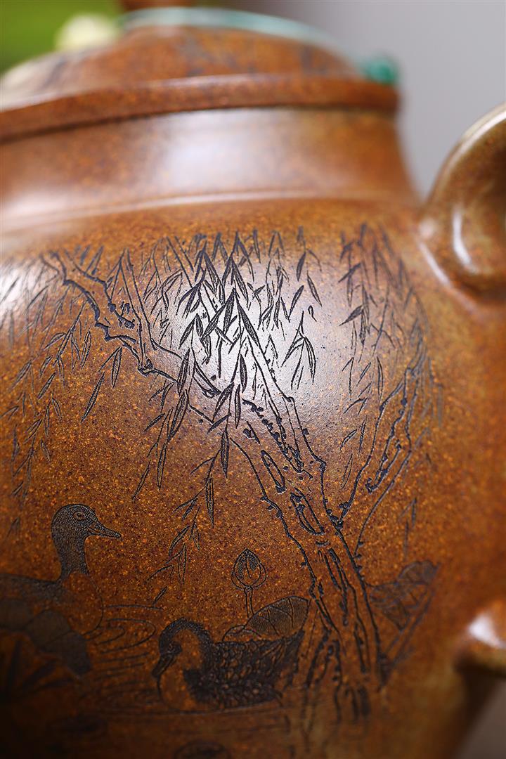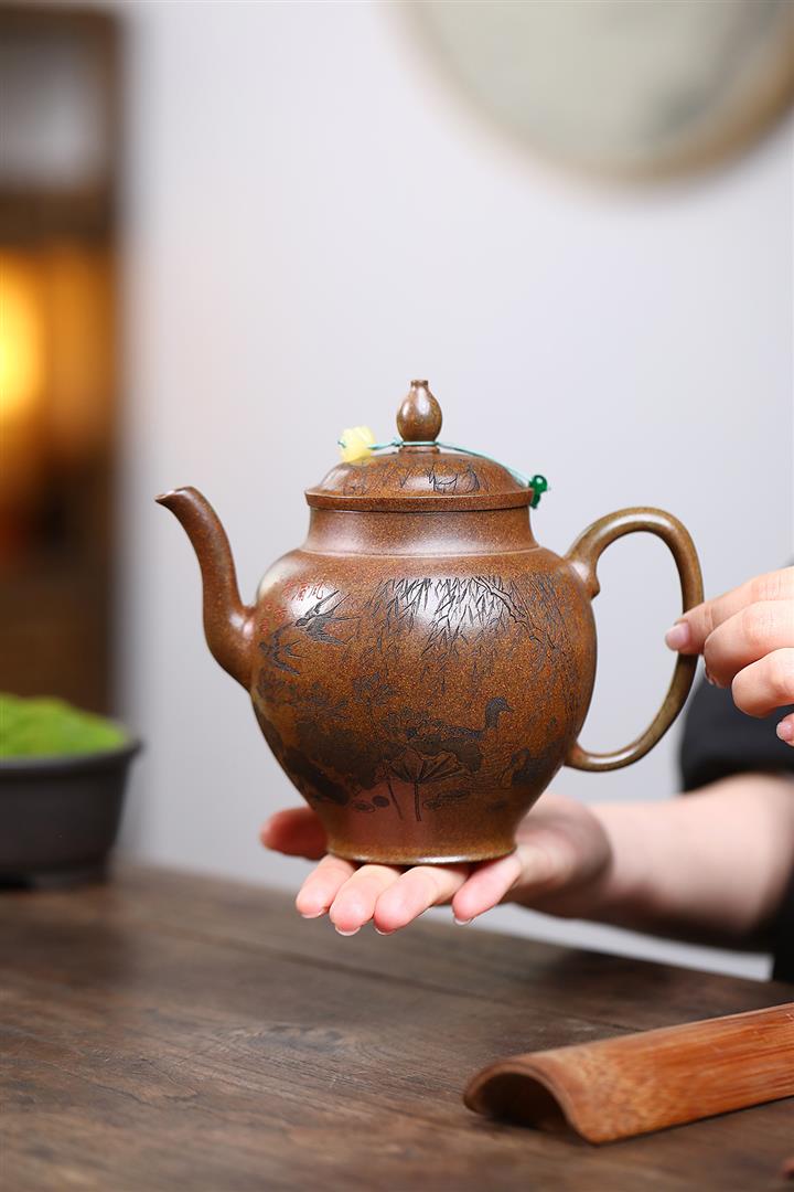 260cc原礦古烏泥滿刻竹影熊韻茶壺POT8181
