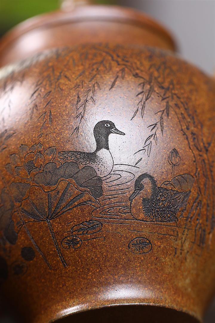 150cc原礦石紅泥荷蟹歸塘寒江茶壺POT8182