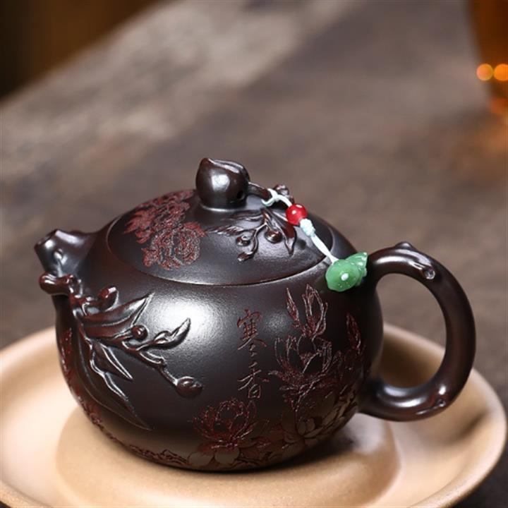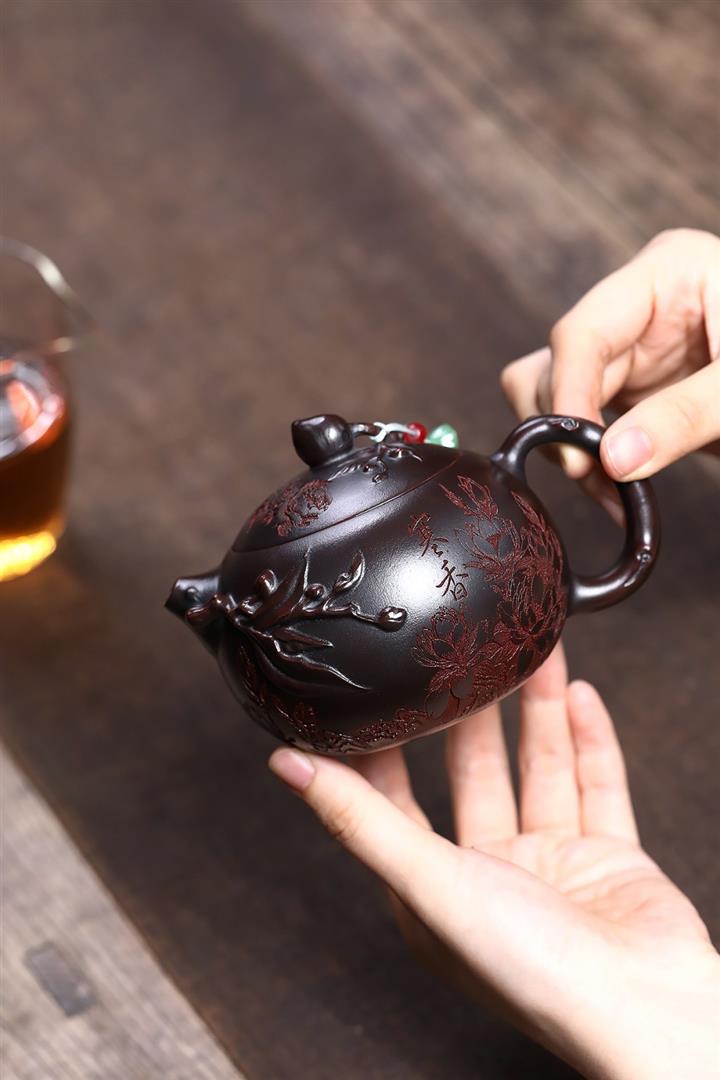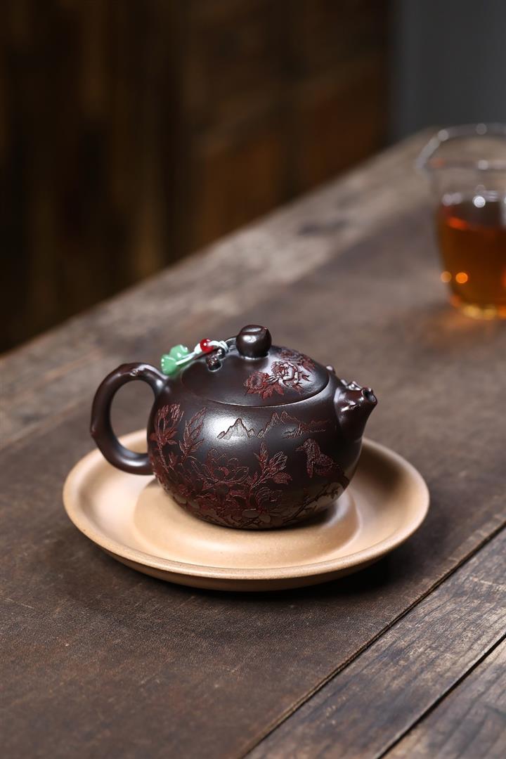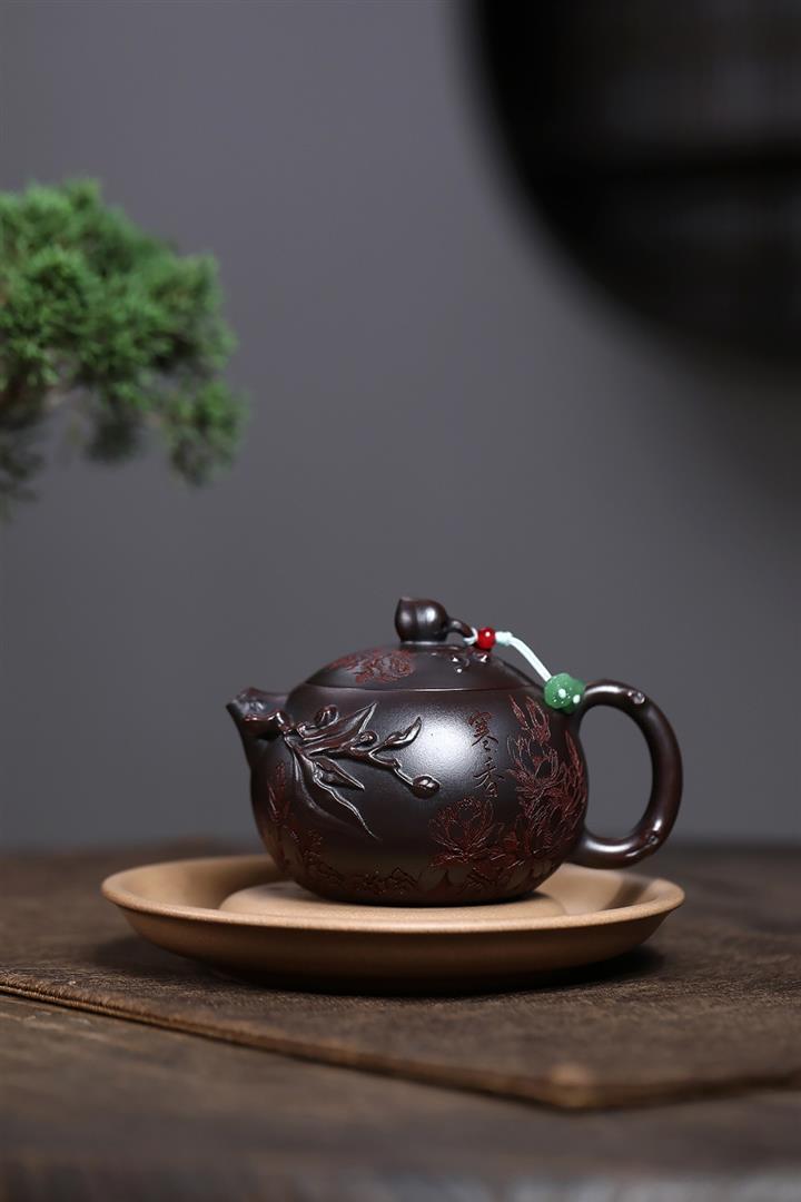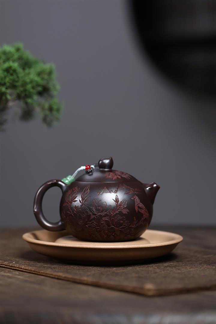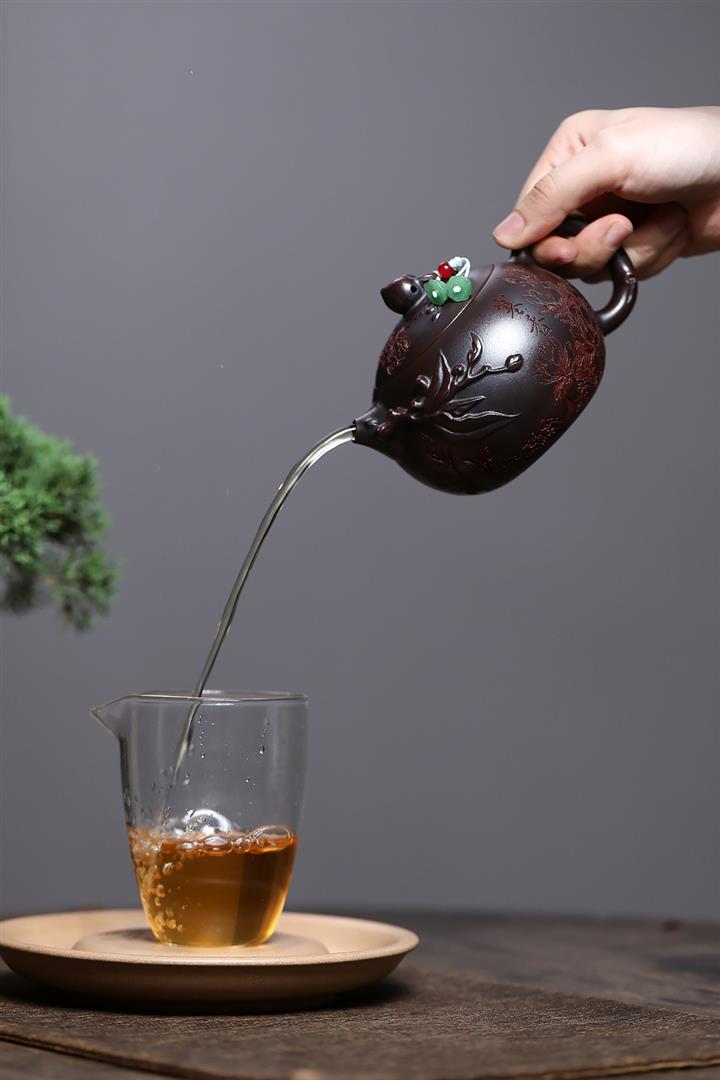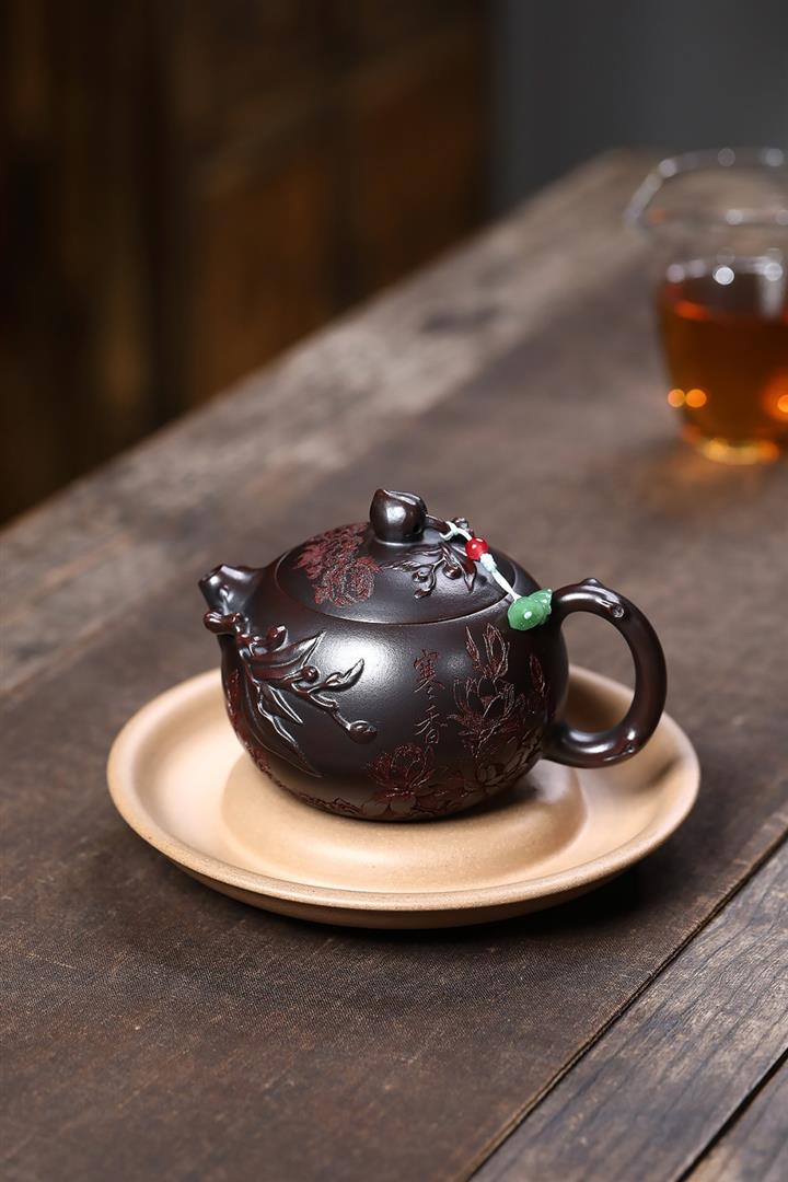 紫砂使用越久,壺身色澤越發光亮照人,氣韻溫雅。紫砂壺長久使用器身會因撫摸擦拭,變得越發溫潤光澤!