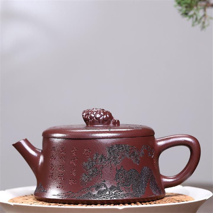 240cc原礦紫泥滿刻伏虎漢瓦茶壺POT8070