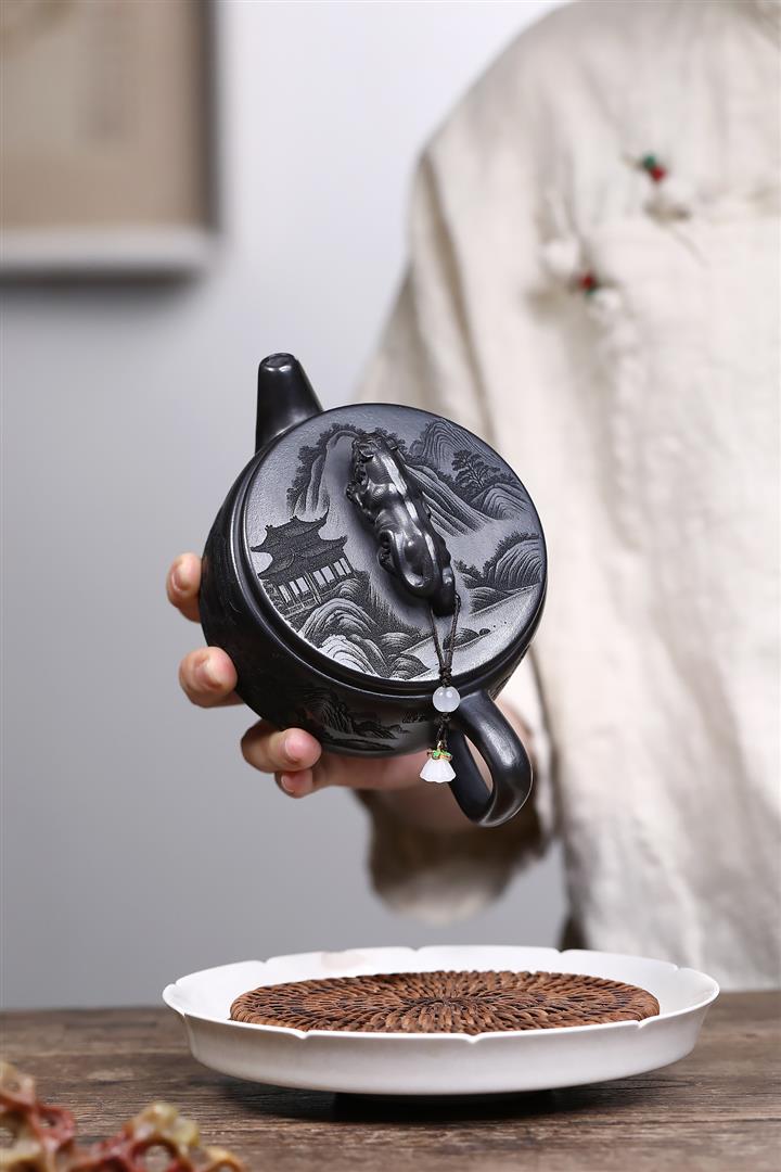 精家藏龍血砂金紋如意紫砂壺POT5737