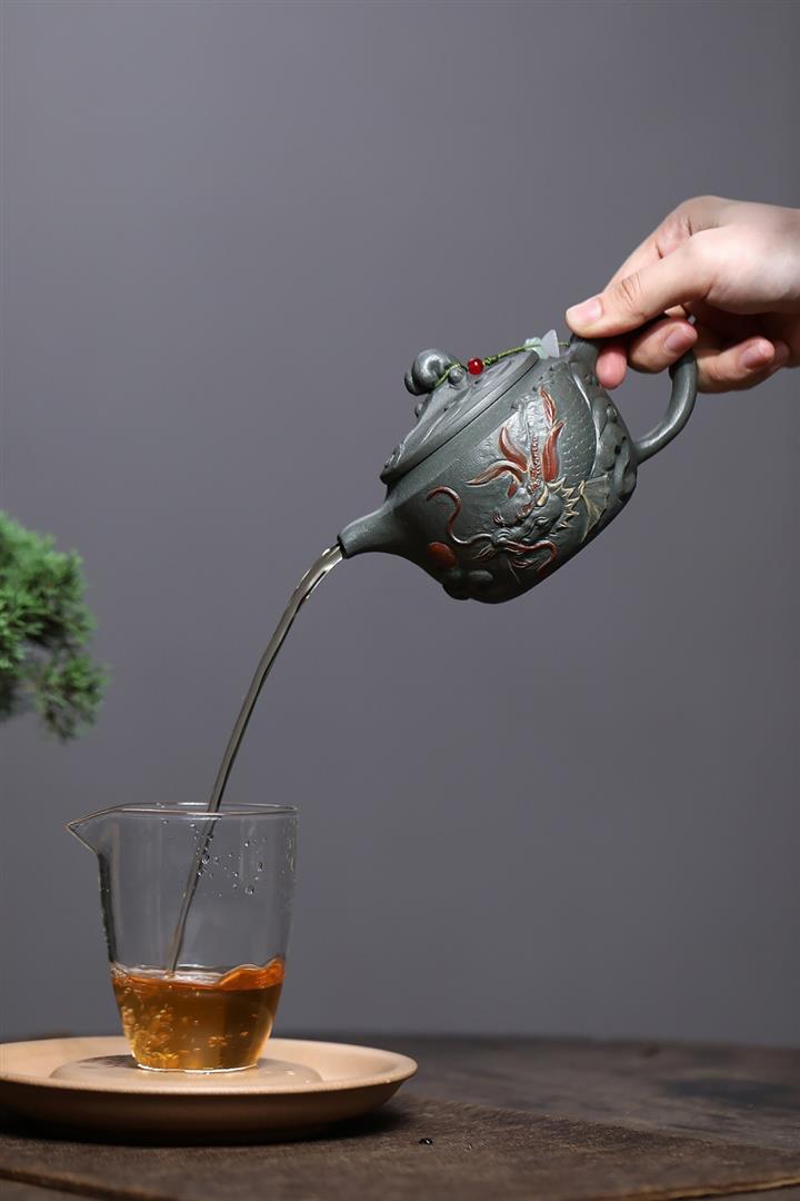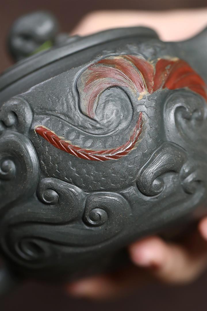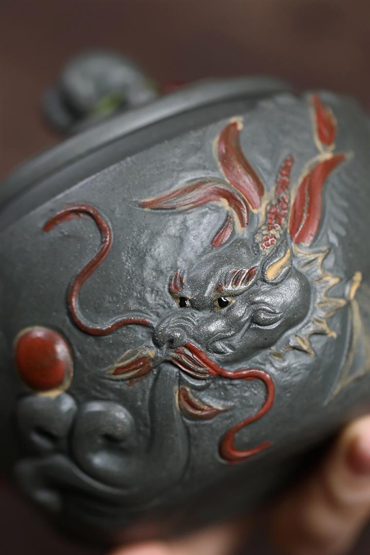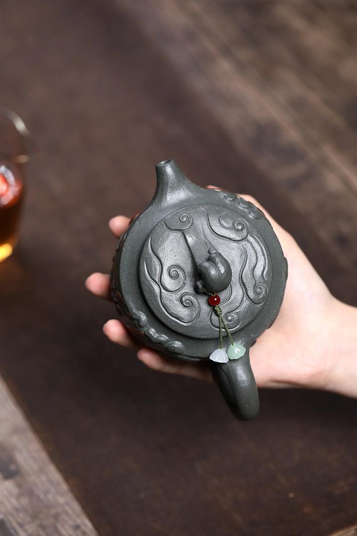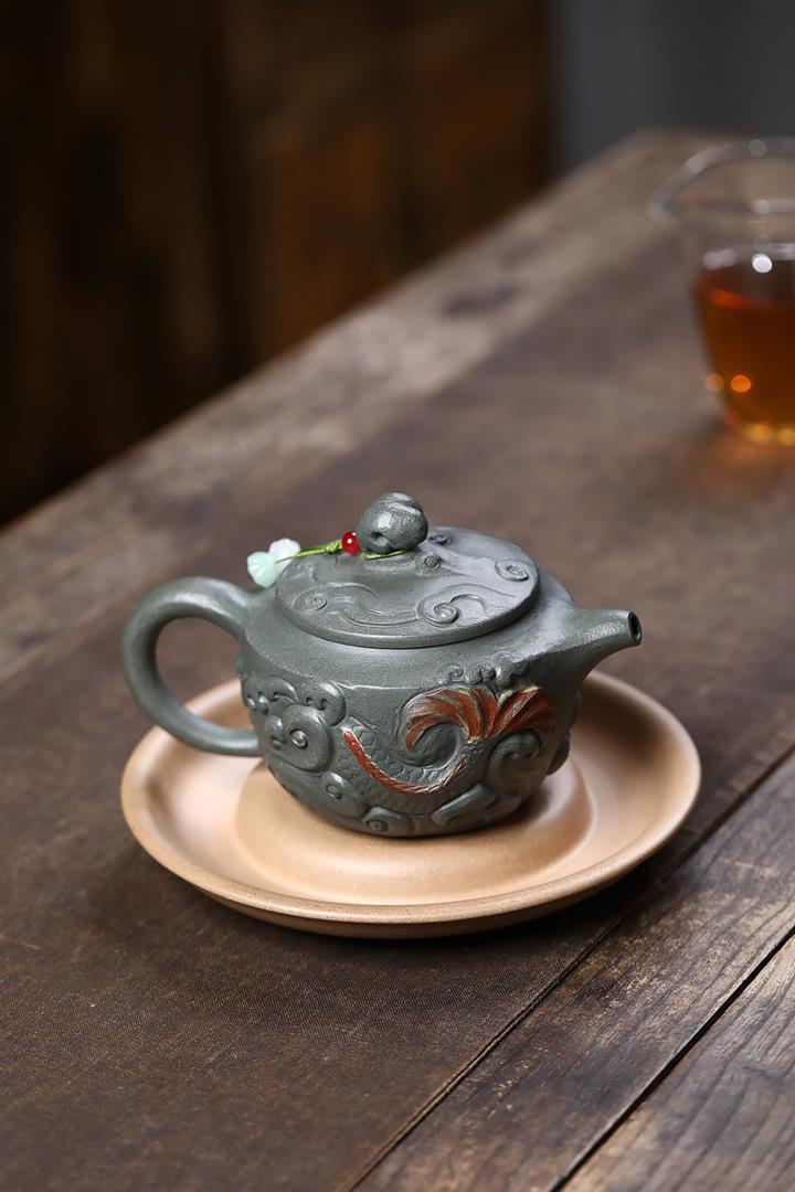 原礦墨綠泥雕龍點睛茶壺POT7736