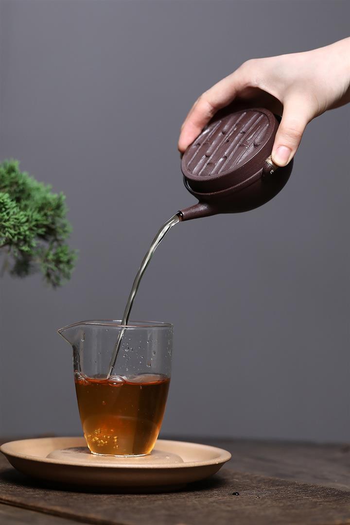 大紅袍還原燒松針壺紫砂壺POT5536