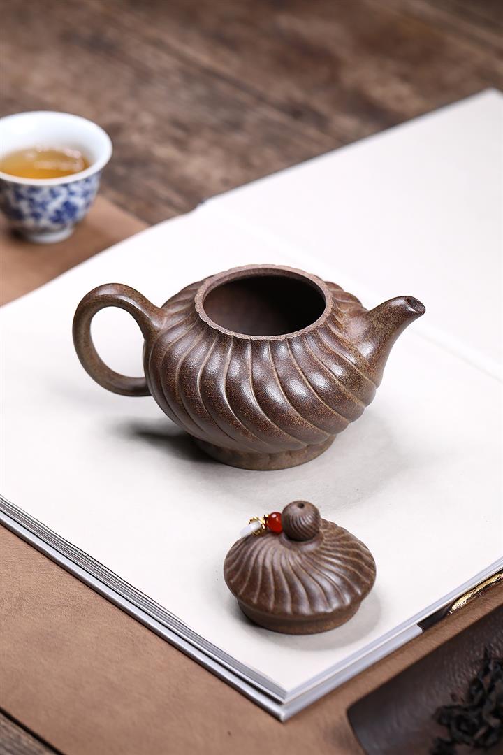 原礦大紅袍焐灰吉祥如意漢瓦茶壺POT7642