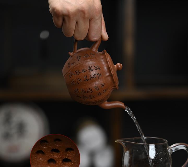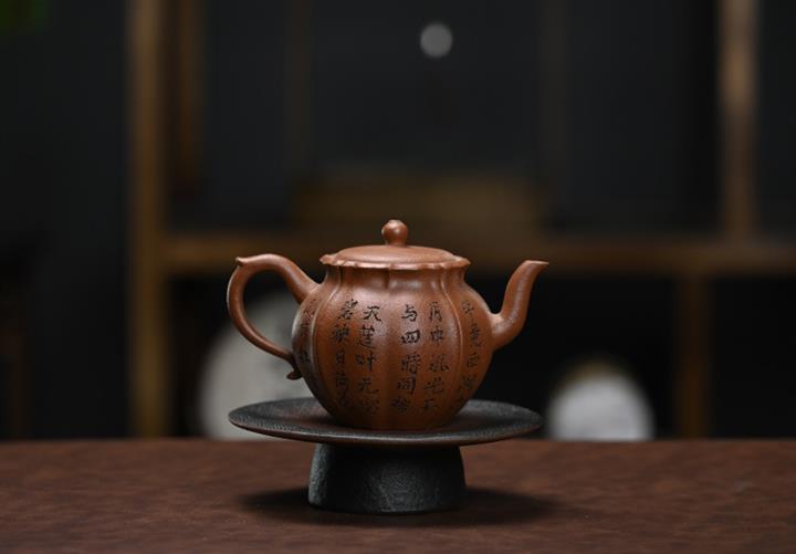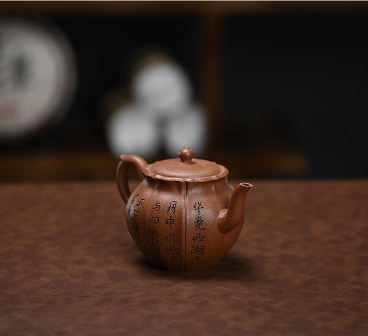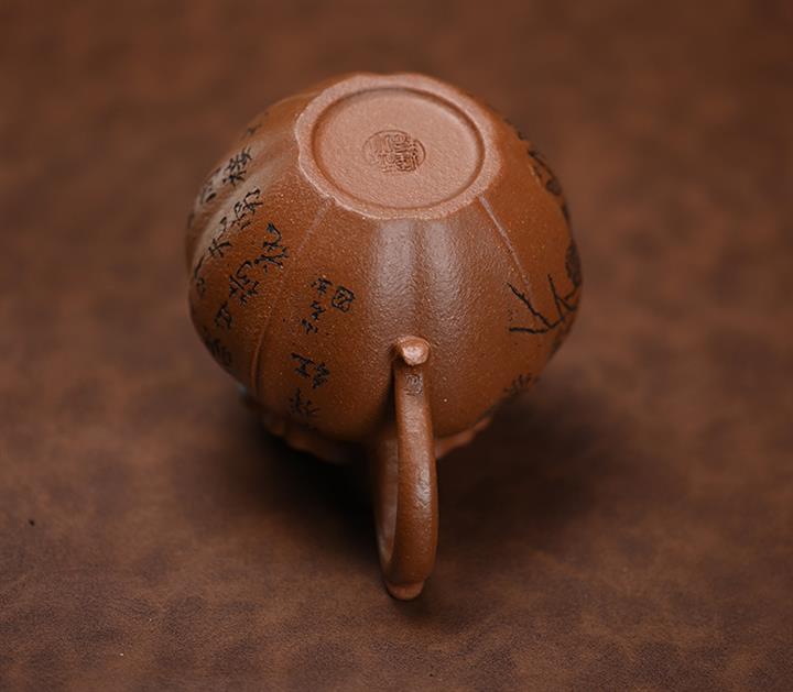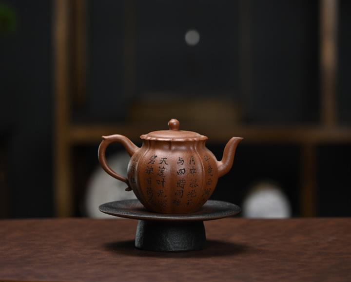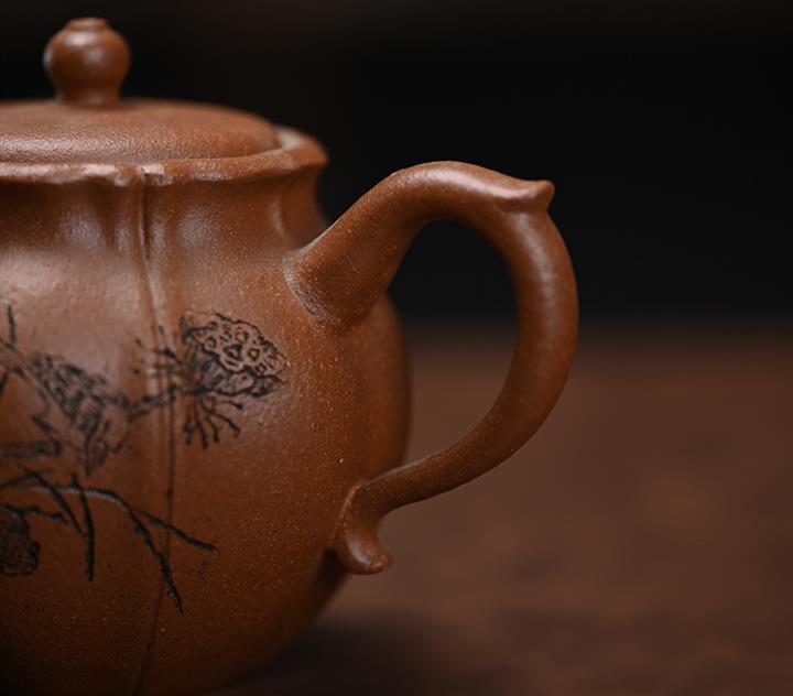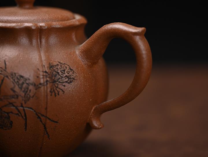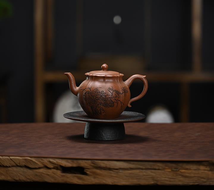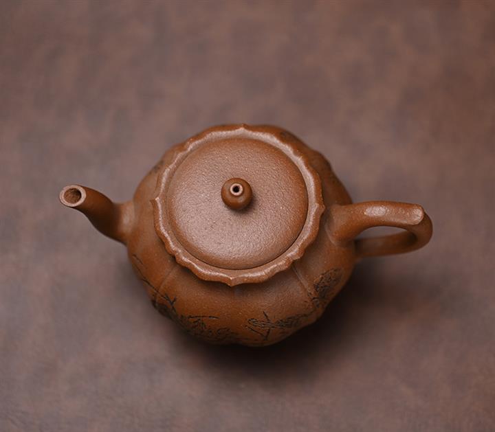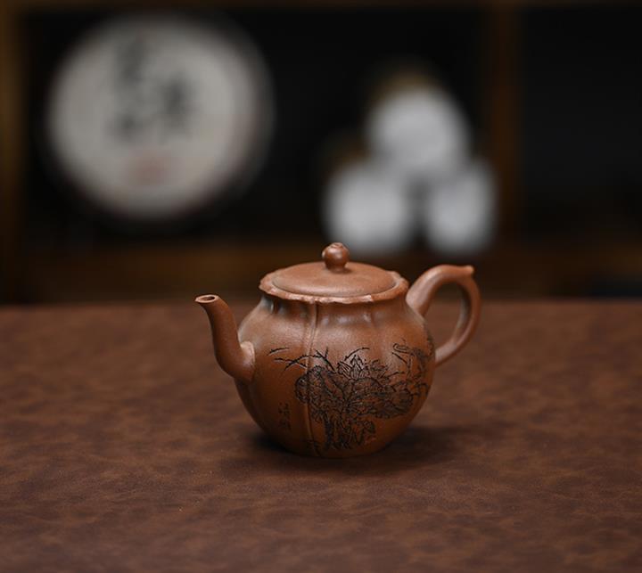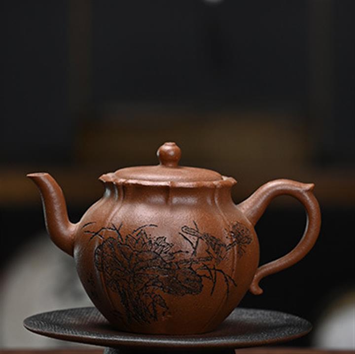 原礦降坡泥刻繪筋紋荷趣茶壺POT7748
