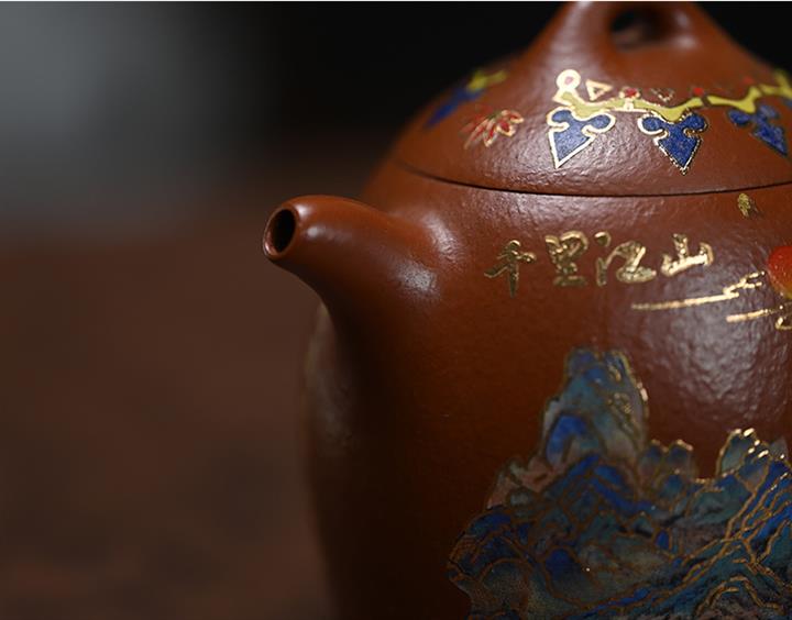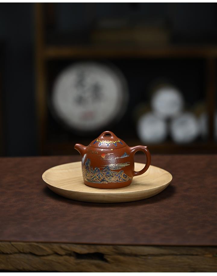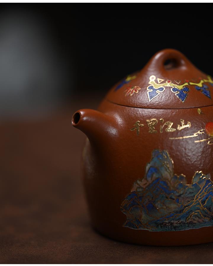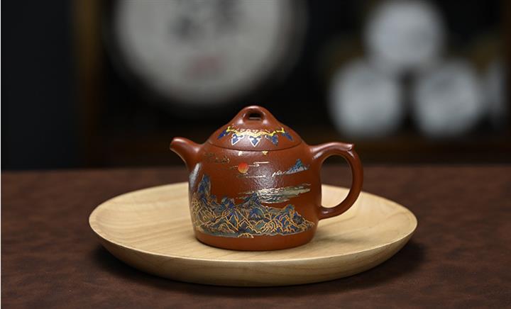 原礦大紅袍純手工彩繪秦權茶壺POT7749