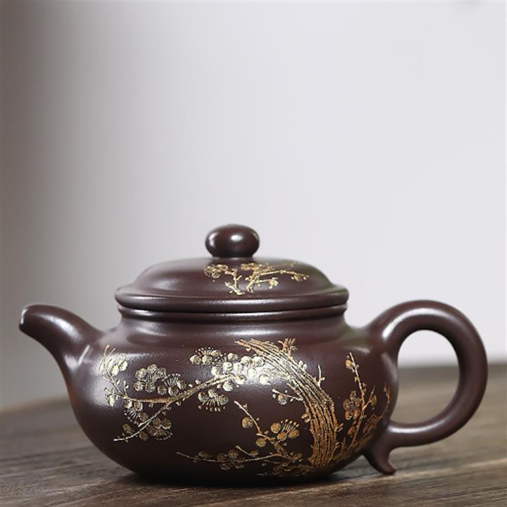 170cc原礦紫泥刻繪寒江泡茶壺POT9815