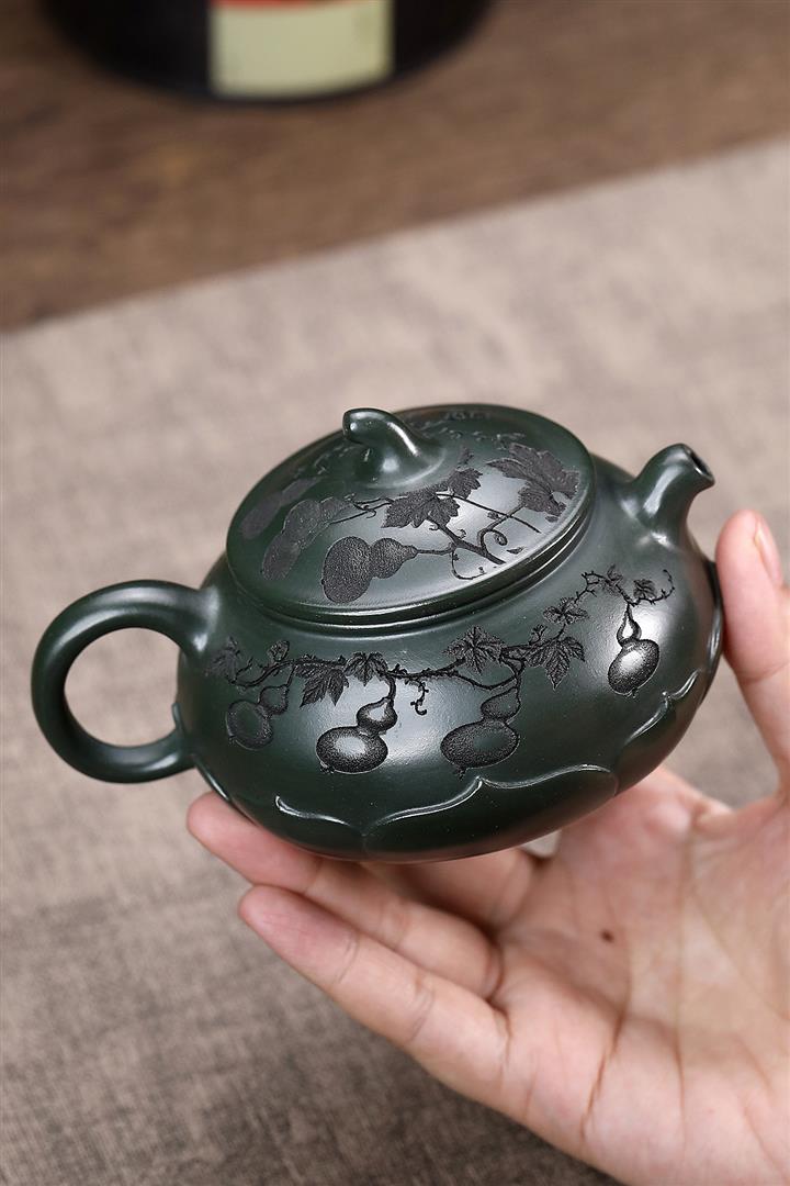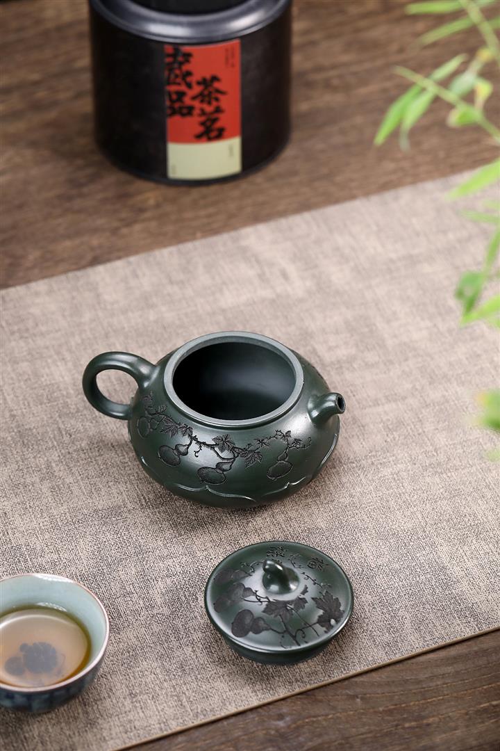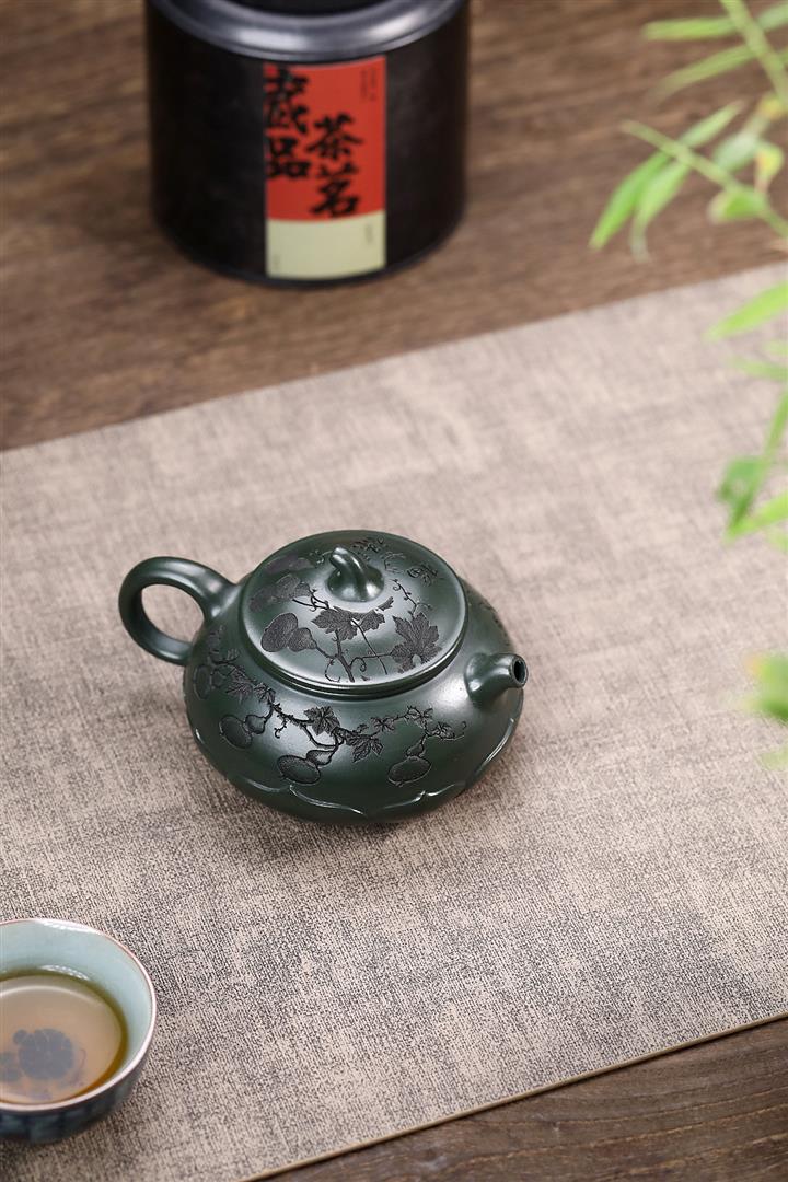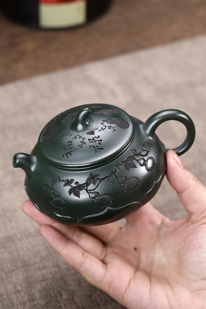 【作品介紹】此款壺形線條流暢,壺把,壺嘴,壺身壹氣呵成栩栩如生,是收藏把玩的好壺,泥料色澤古樸典雅,日久使用,漸露鋒芒,養成變化快,溫潤莊重,用其泡茶,使用的年代久,壺身就溫潤,泡出來的茶湯也就醇郁芳馨。