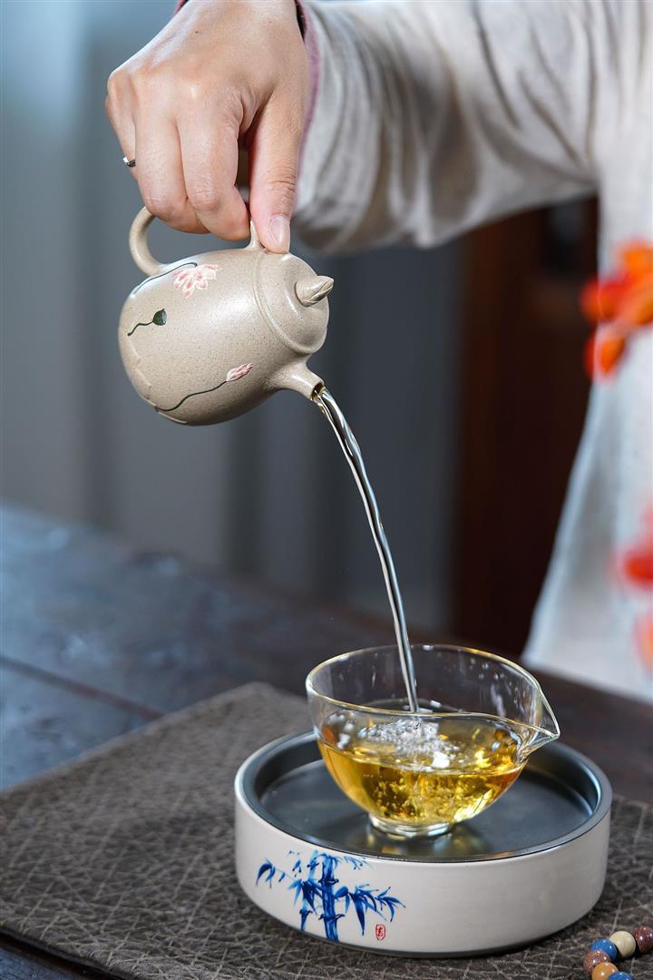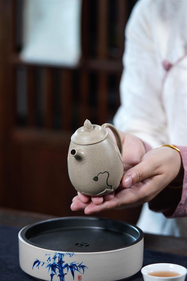 【泥料特點】砂土氣重,似淳實農民,日久使用,漸露鋒芒,養成變化,溫潤莊重。紫砂是壹種雙重氣孔結構的多孔性材質,氣孔微細,密度高。用紫砂壺沏茶,不失原味,且香不渙散,得茶之真香真味。紫砂使用越久,壺身色澤越發光亮照人,氣韻溫雅。紫砂壺長久使用器身會因撫摸擦拭,變得越發溫潤光澤。