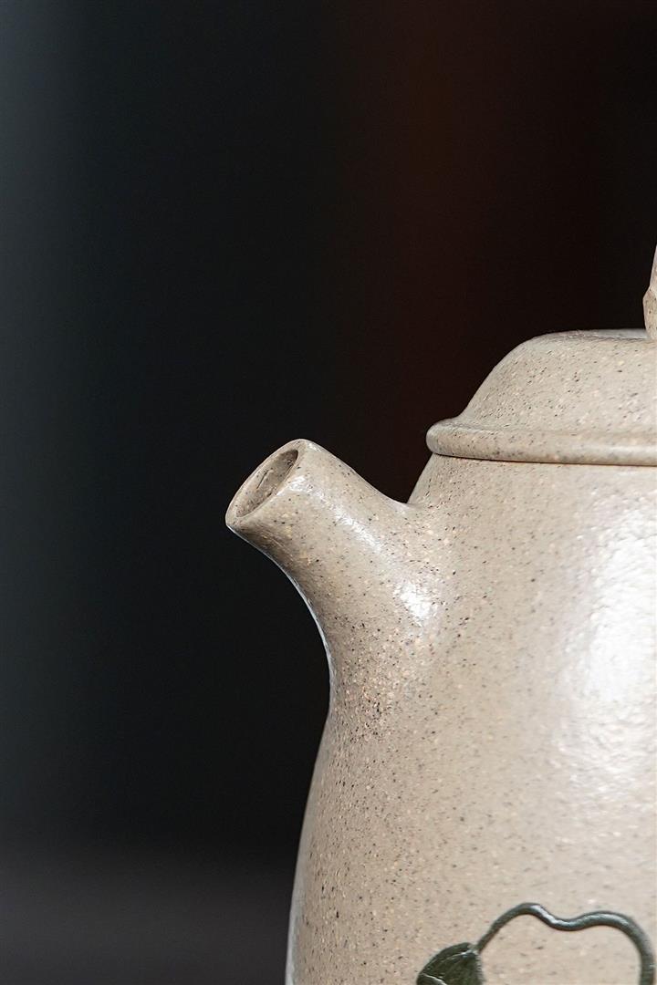 【作品介紹】此款壺形線條流暢,壺把,壺嘴,壺身壹氣呵成栩栩如生,是收藏把玩的好壺,泥料色澤古樸典雅,日久使用,漸露鋒芒,養成變化快,溫潤莊重,用其泡茶,使用的年代久,壺身就溫潤,泡出來的茶湯也就醇郁芳馨。