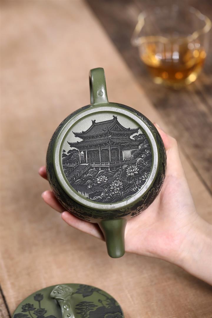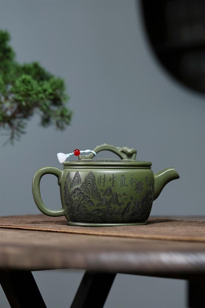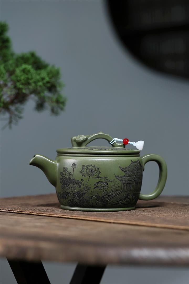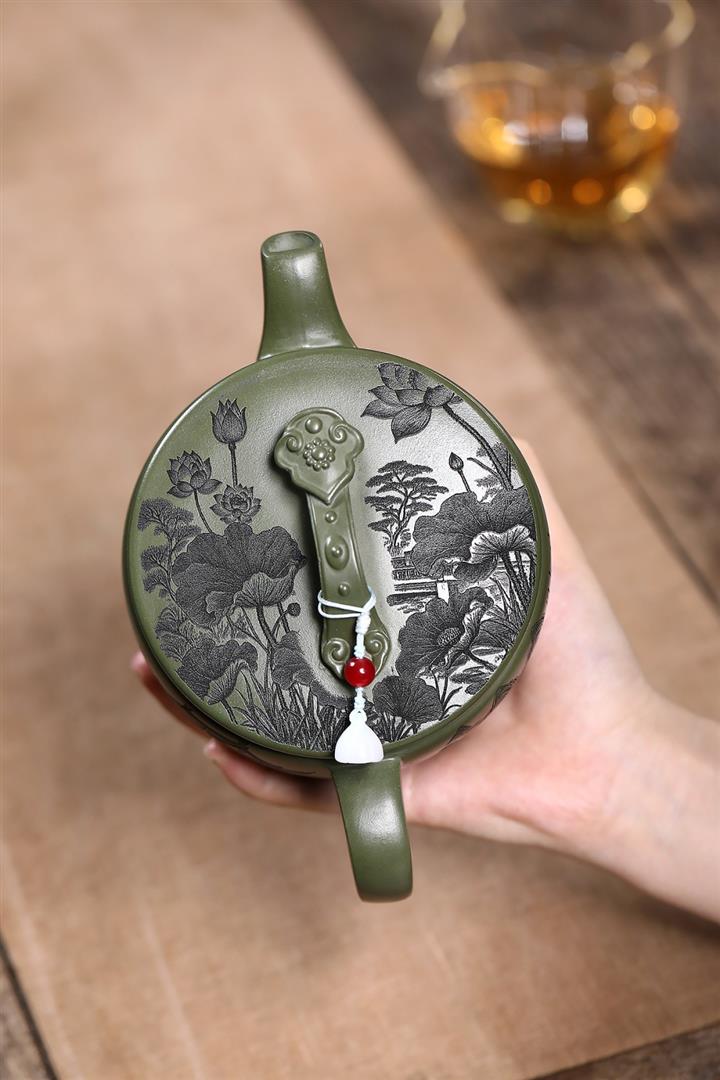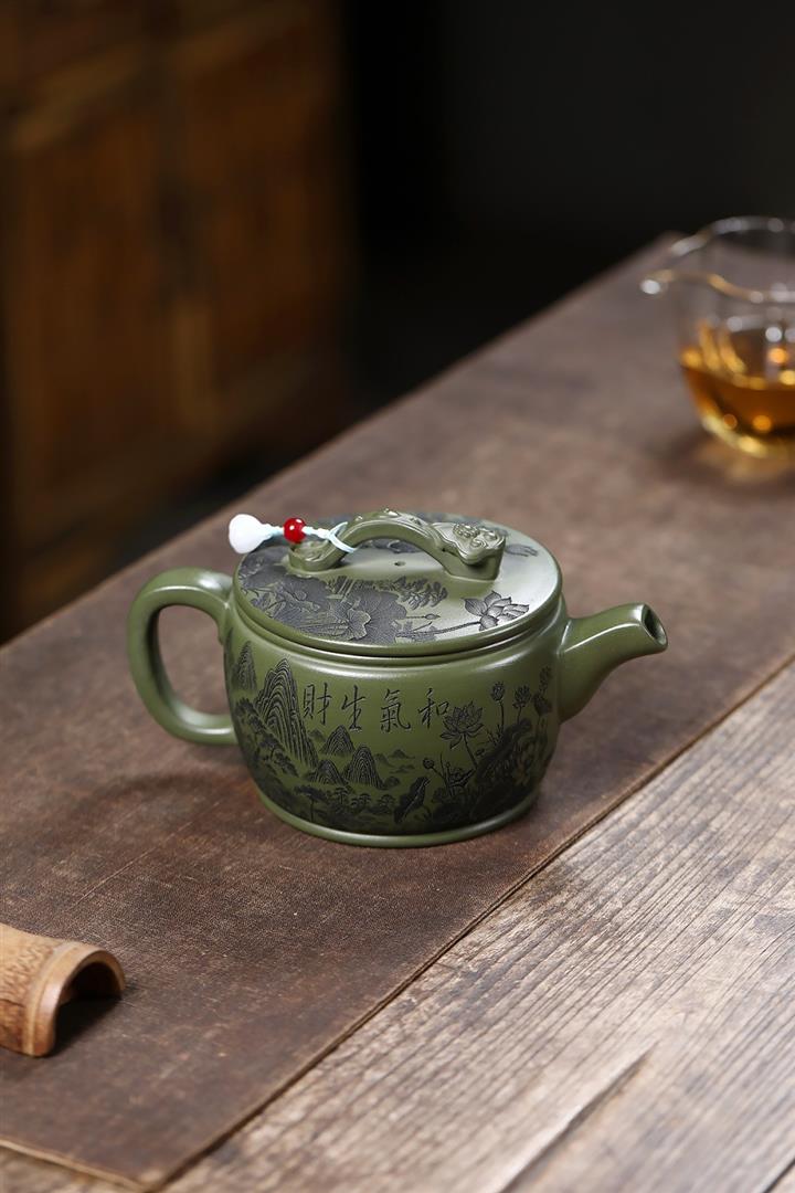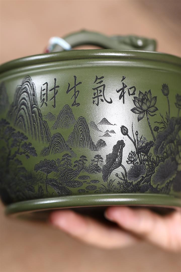 原礦綠泥荷趣生財如意漢瓦茶壺POT7791