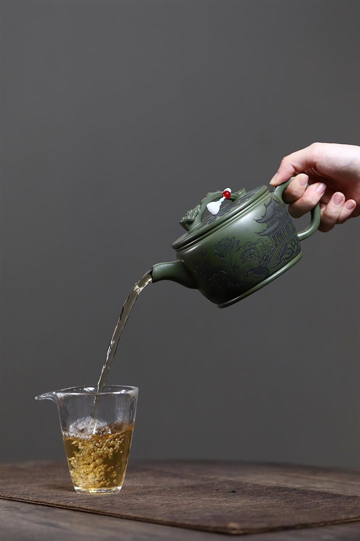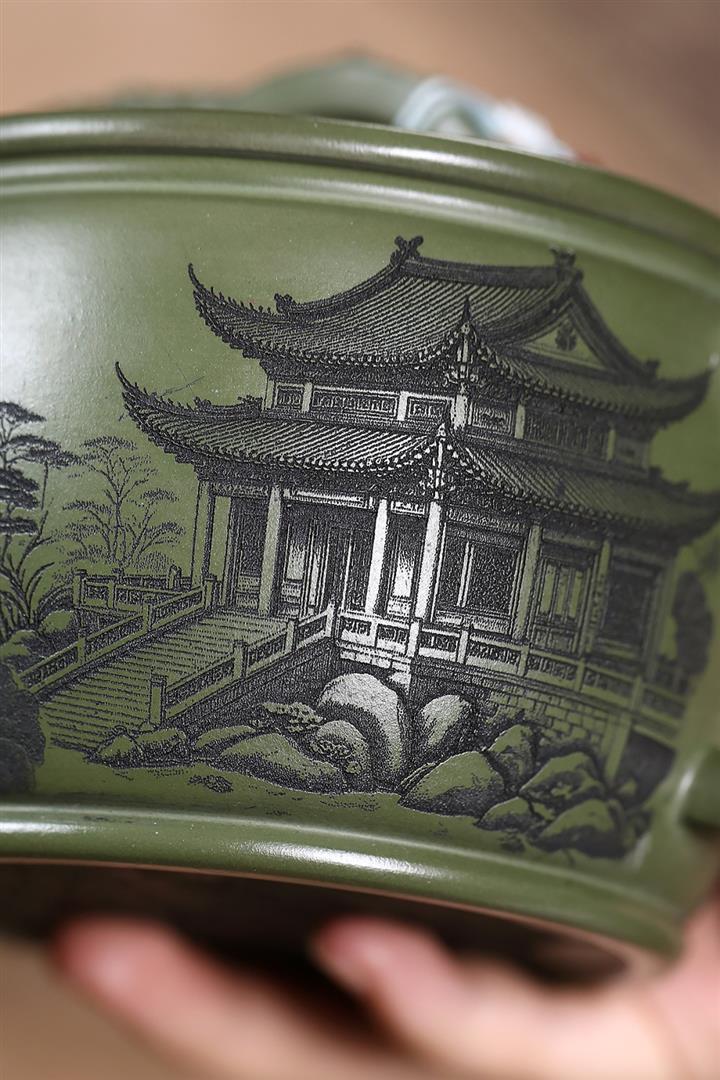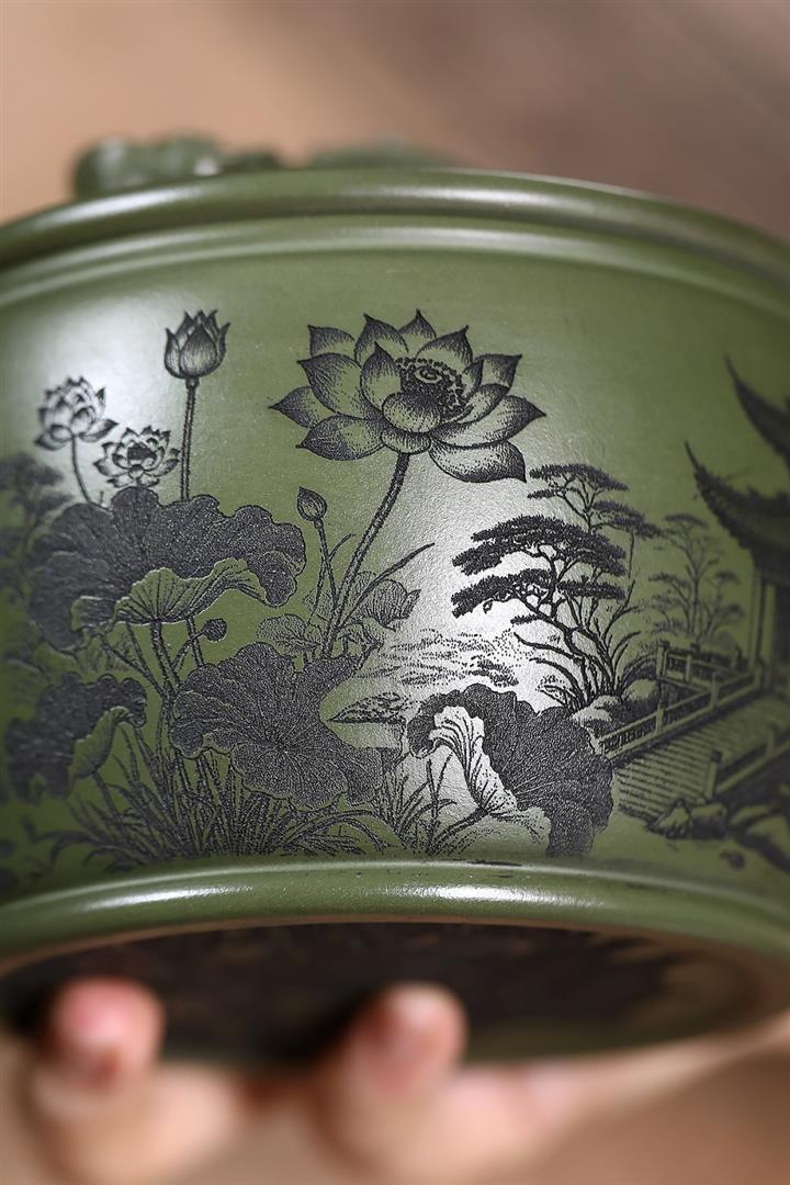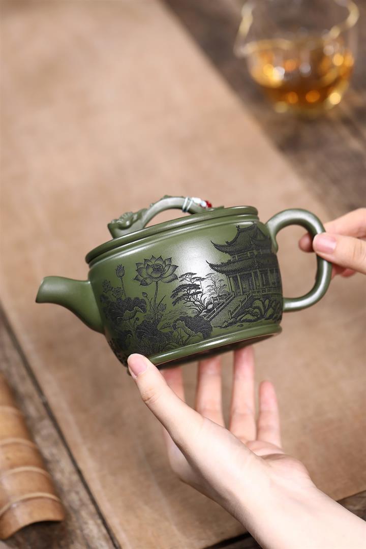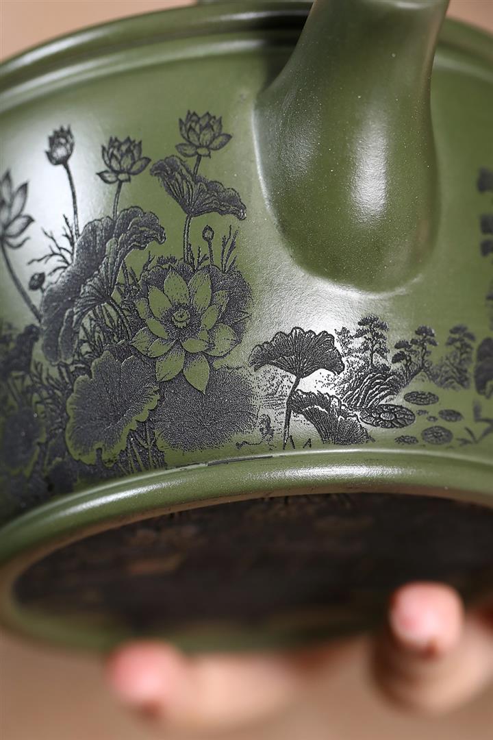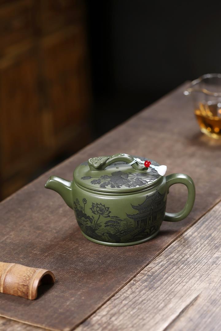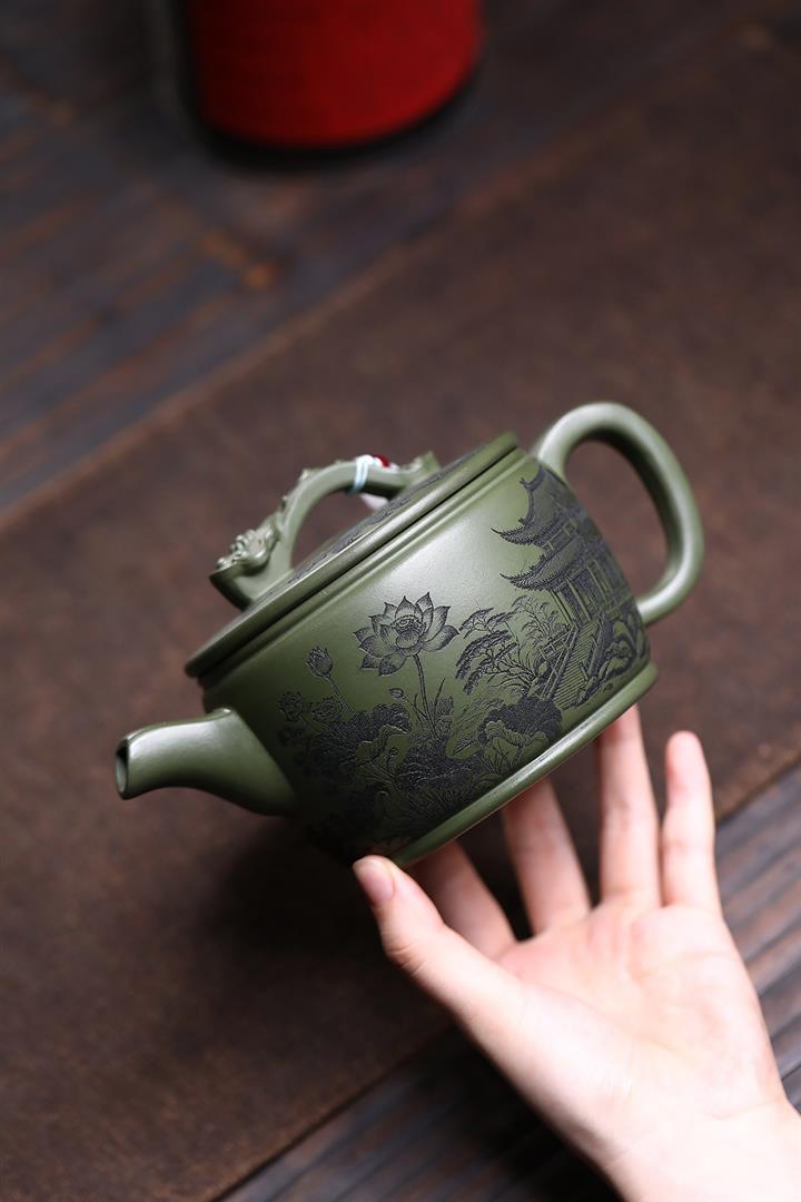 原礦綠泥荷趣生財如意漢瓦茶壺POT7791