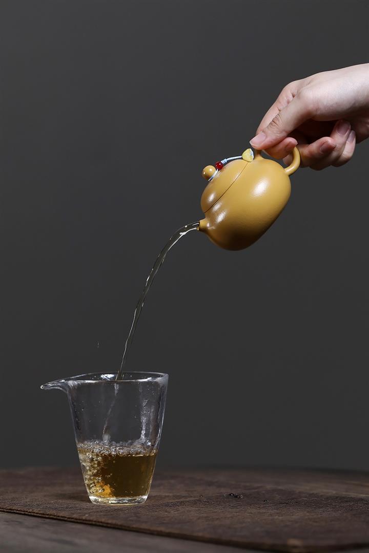 【泥料特點】砂土氣重,似淳實農民,日久使用,漸露鋒芒,養成變化,溫潤莊重。紫砂是壹種雙重氣孔結構的多孔性材質,氣孔微細,密度高。用紫砂壺沏茶,不失原味,且香不渙散,得茶之真香真味。紫砂使用越久,壺身色澤越發光亮照人,氣韻溫雅。紫砂壺長久使用器身會因撫摸擦拭,變得越發溫潤光澤。