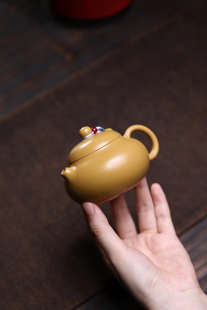 原礦黃金朱泥內推球孔文旦壺POT7792