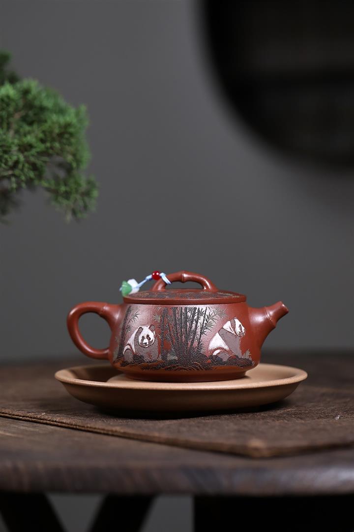 原礦紅降坡熊貓漢瓦茶壺POT7806