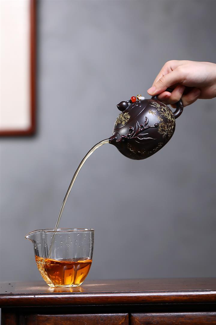 【泥料特點】砂土氣重,似淳實農民,日久使用,漸露鋒芒,養成變化,溫潤莊重。紫砂是壹種雙重氣孔結構的多孔性材質,氣孔微細,密度高。用紫砂壺沏茶,不失原味,且香不渙散,得茶之真香真味。紫砂使用越久,壺身色澤越發光亮照人,氣韻溫雅。紫砂壺長久使用器身會因撫摸擦拭,變得越發溫潤光澤。