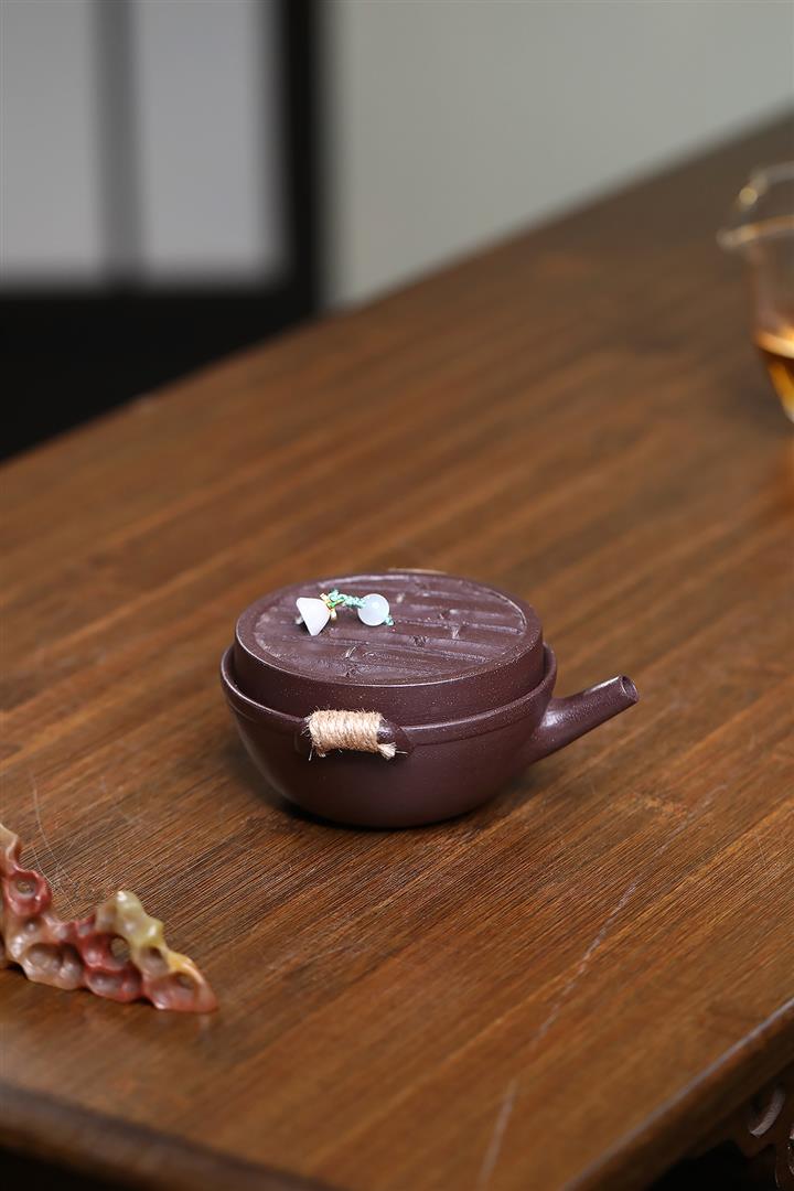 原礦紫泥堆繪蓮蓬秦權茶壺POT7369