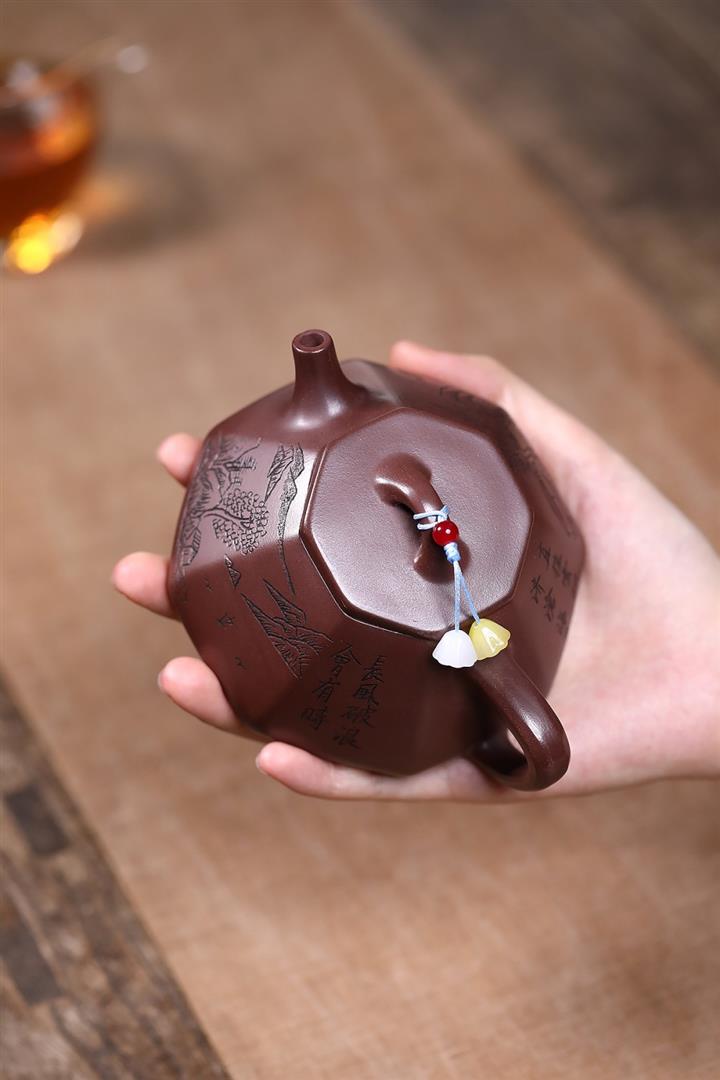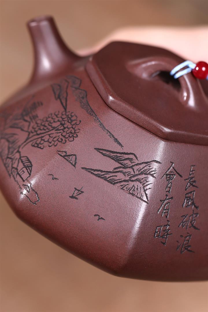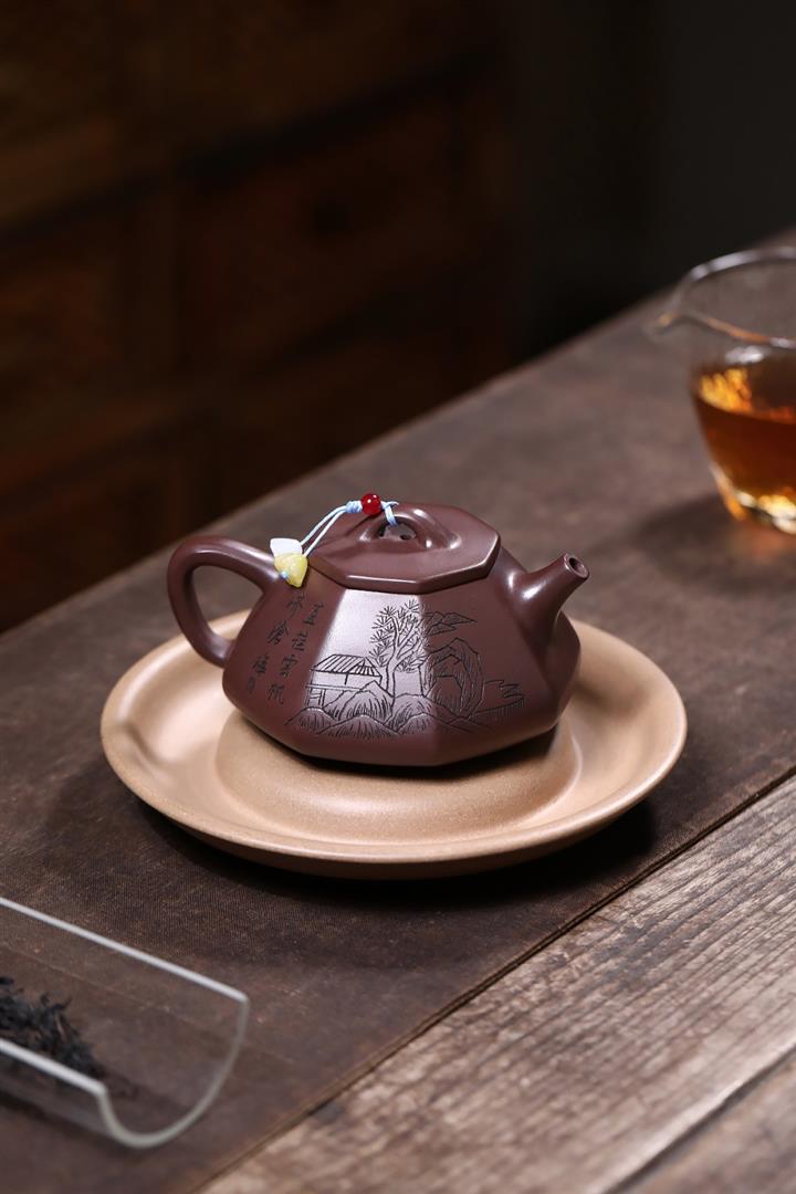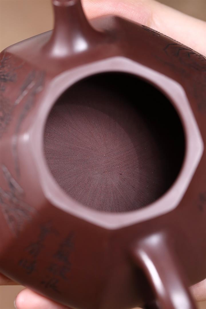 原礦紫泥八方山水石瓢茶壺POT7834