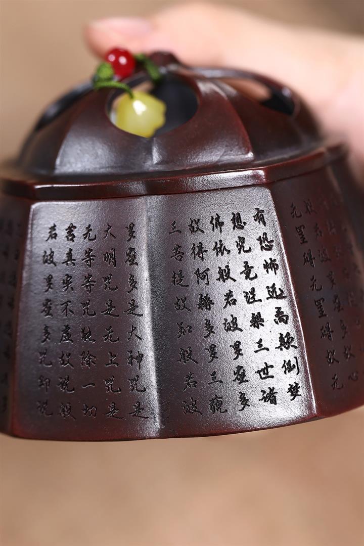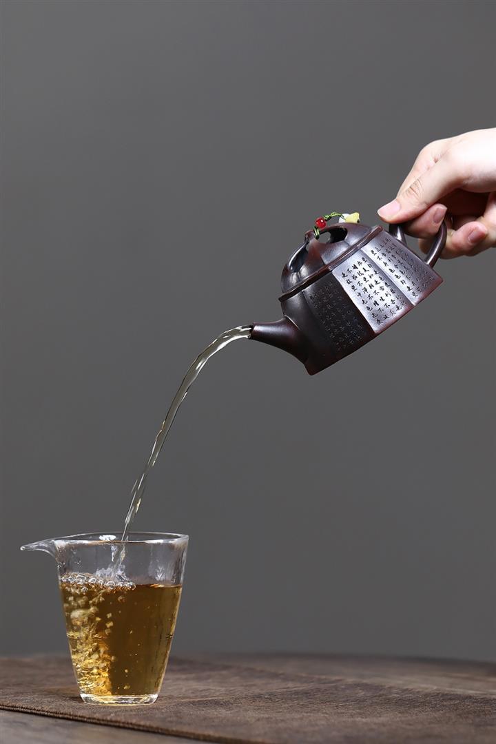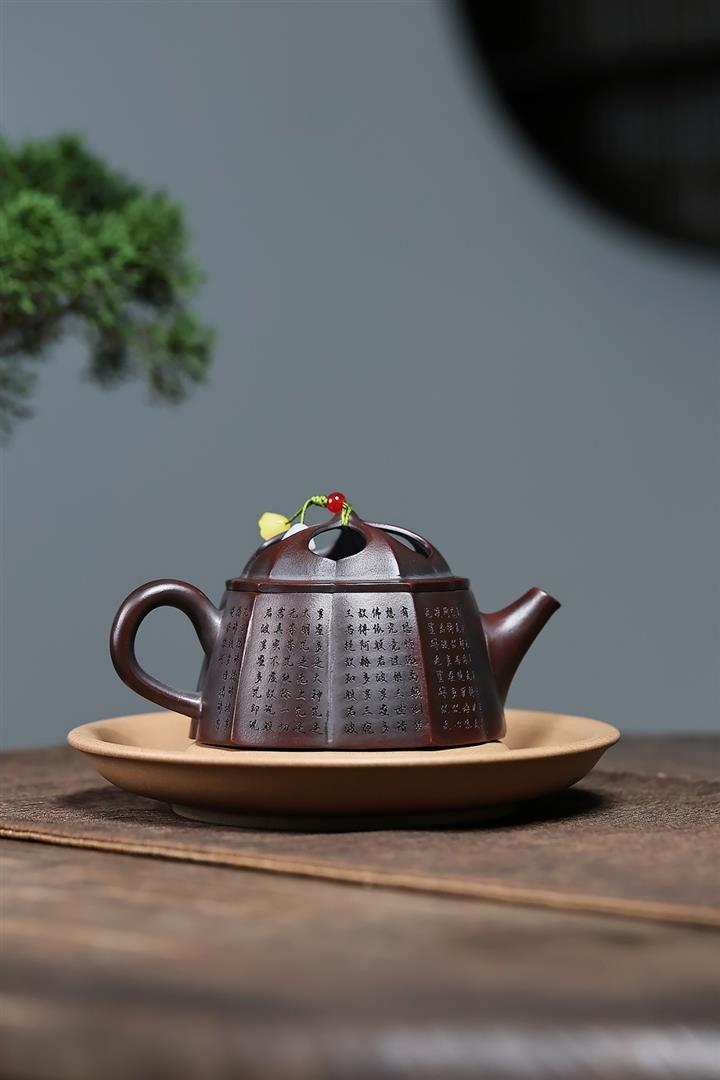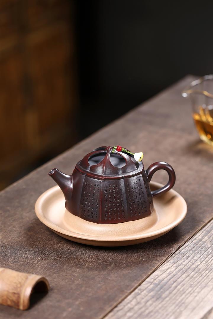 【泥料特點】砂土氣重,似淳實農民,日久使用,漸露鋒芒,養成變化,溫潤莊重。紫砂是壹種雙重氣孔結構的多孔性材質,氣孔微細,密度高。用紫砂壺沏茶,不失原味,且香不渙散,得茶之真香真味。紫砂使用越久,壺身色澤越發光亮照人,氣韻溫雅。紫砂壺長久使用器身會因撫摸擦拭,變得越發溫潤光澤。