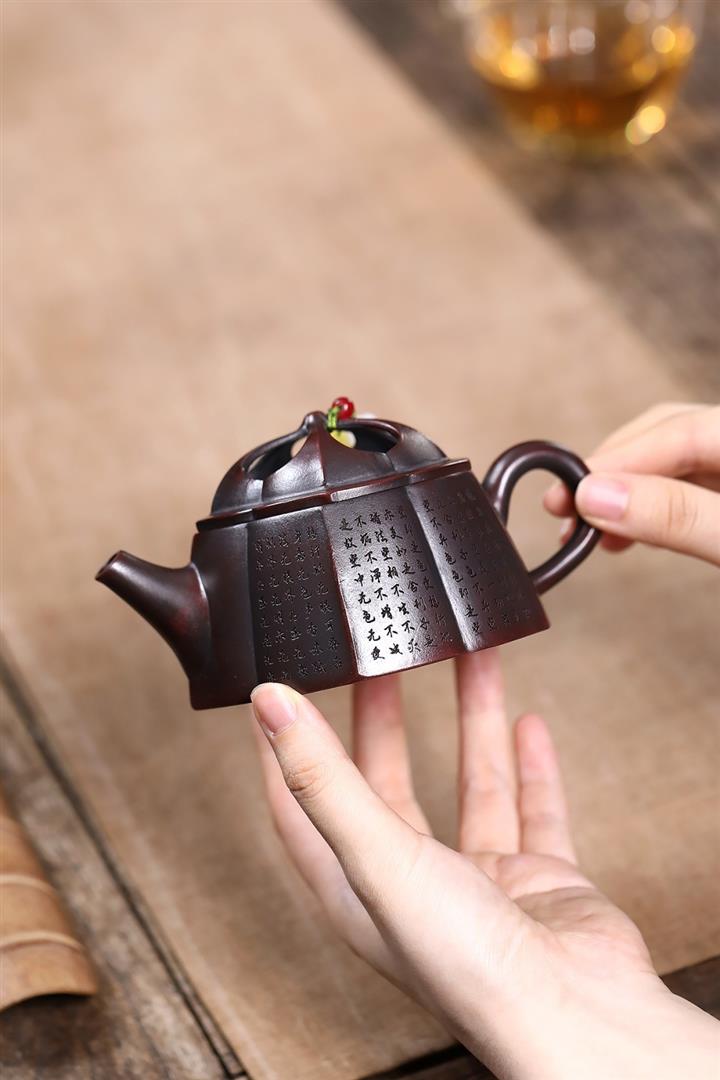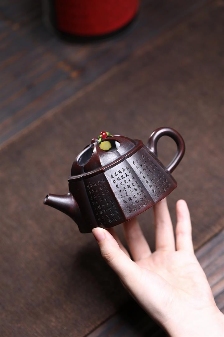 【作品介紹】此款壺形線條流暢,壺把,壺嘴,壺身壹氣呵成栩栩如生,是收藏把玩的好壺,泥料色澤古樸典雅,日久使用,漸露鋒芒,養成變化快,溫潤莊重,用其泡茶,使用的年代久,壺身就溫潤,泡出來的茶湯也就醇郁芳馨。