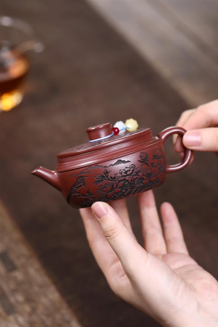 原礦降坡泥無塵手工花鳥茶壺POT6605