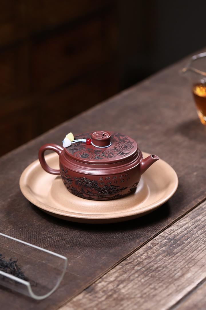 【泥料特點】砂土氣重,似淳實農民,日久使用,漸露鋒芒,養成變化,溫潤莊重。紫砂是壹種雙重氣孔結構的多孔性材質,氣孔微細,密度高。用紫砂壺沏茶,不失原味,且香不渙散,得茶之真香真味。紫砂使用越久,壺身色澤越發光亮照人,氣韻溫雅。紫砂壺長久使用器身會因撫摸擦拭,變得越發溫潤光澤。