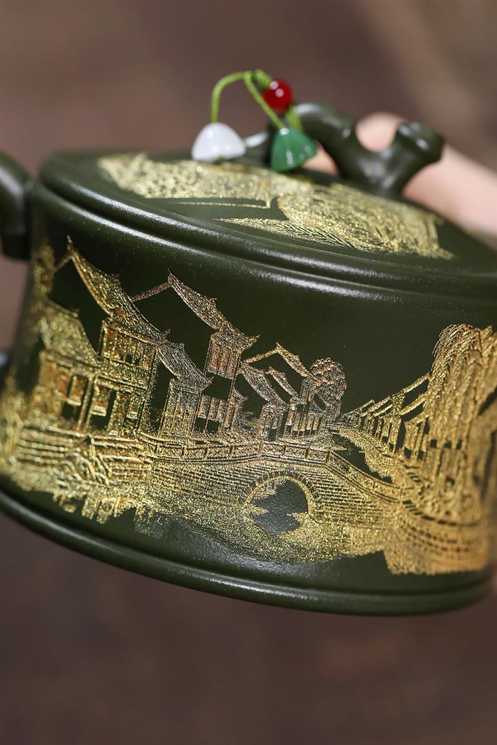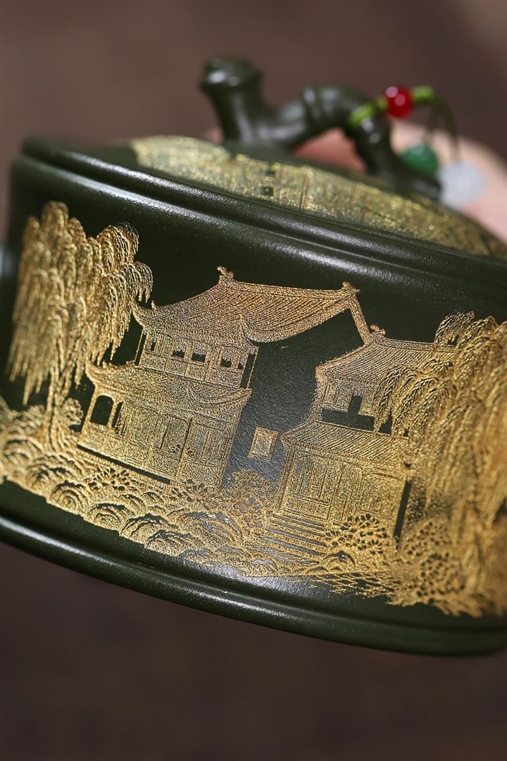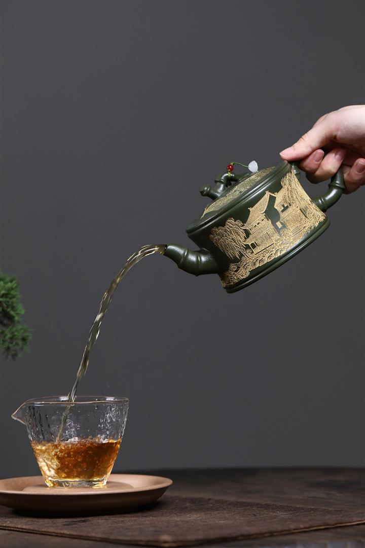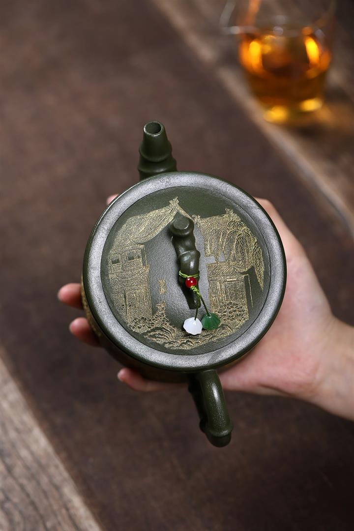 【作品介紹】此款壺形線條流暢,壺把,壺嘴,壺身壹氣呵成栩栩如生,是收藏把玩的好壺,泥料色澤古樸典雅,日久使用,漸露鋒芒,養成變化快,溫潤莊重,用其泡茶,使用的年代久,壺身就溫潤,泡出來的茶湯也就醇郁芳馨。