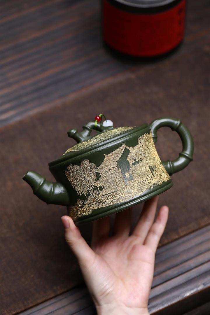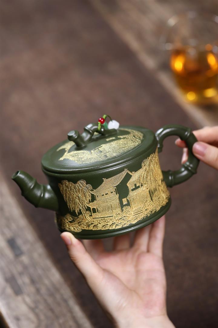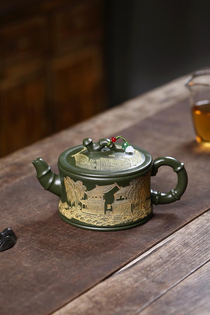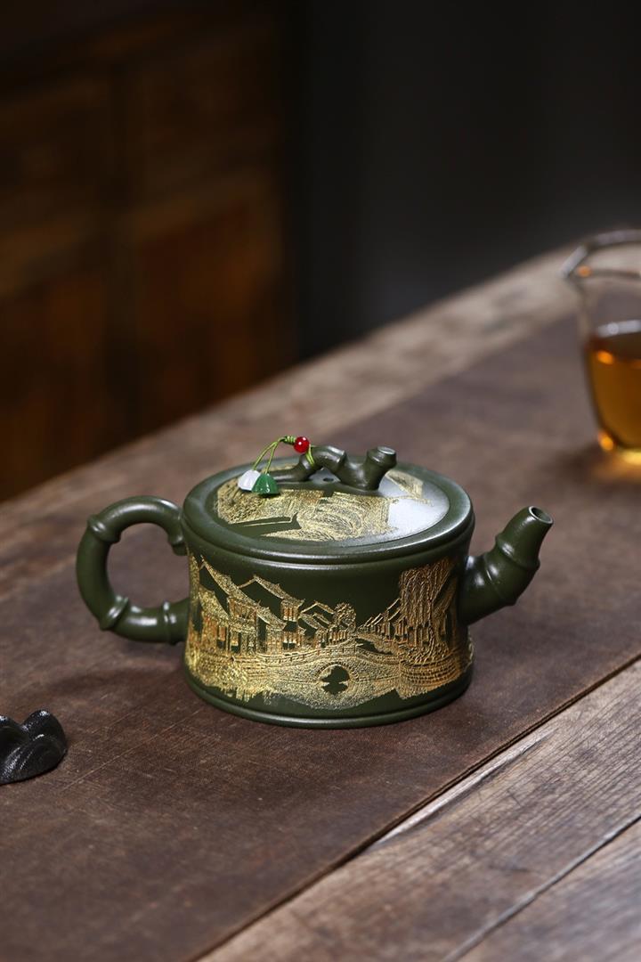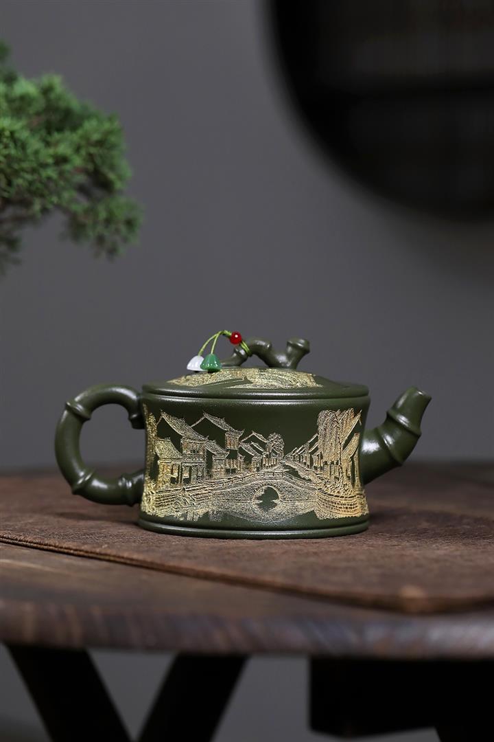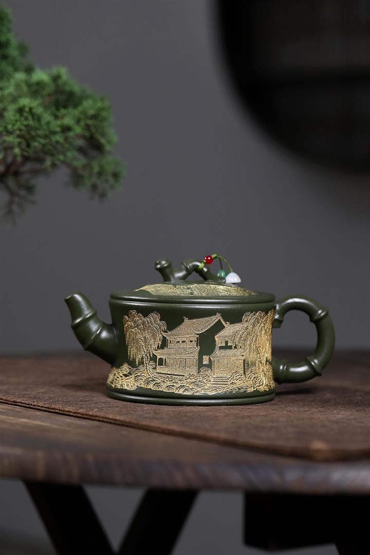 原礦綠泥憶江南竹段壺POT7841