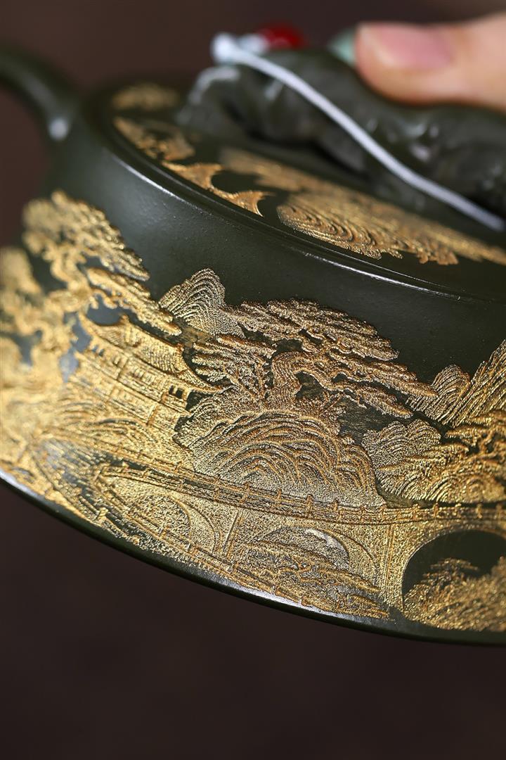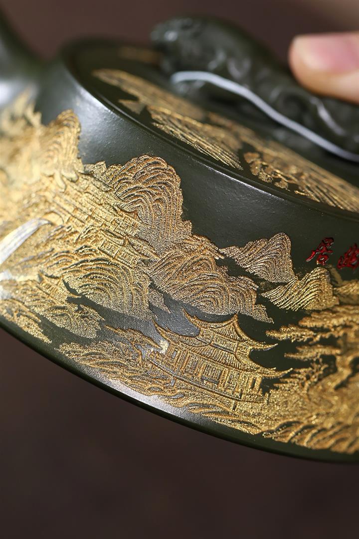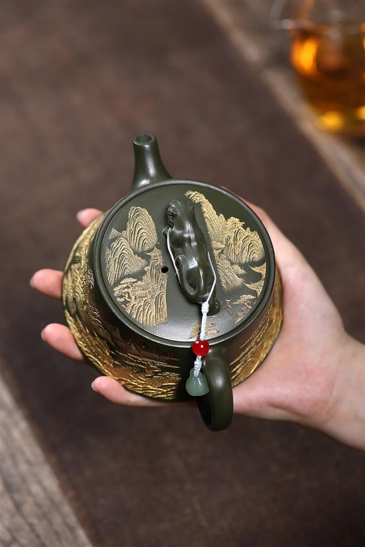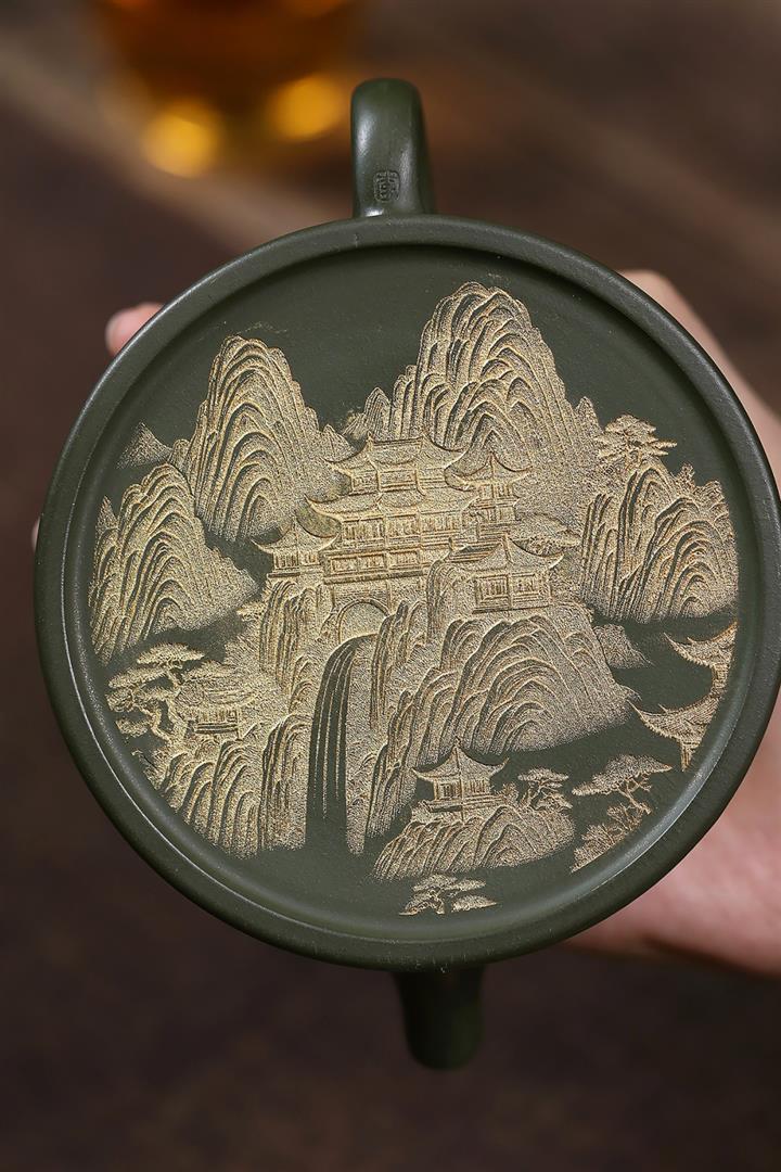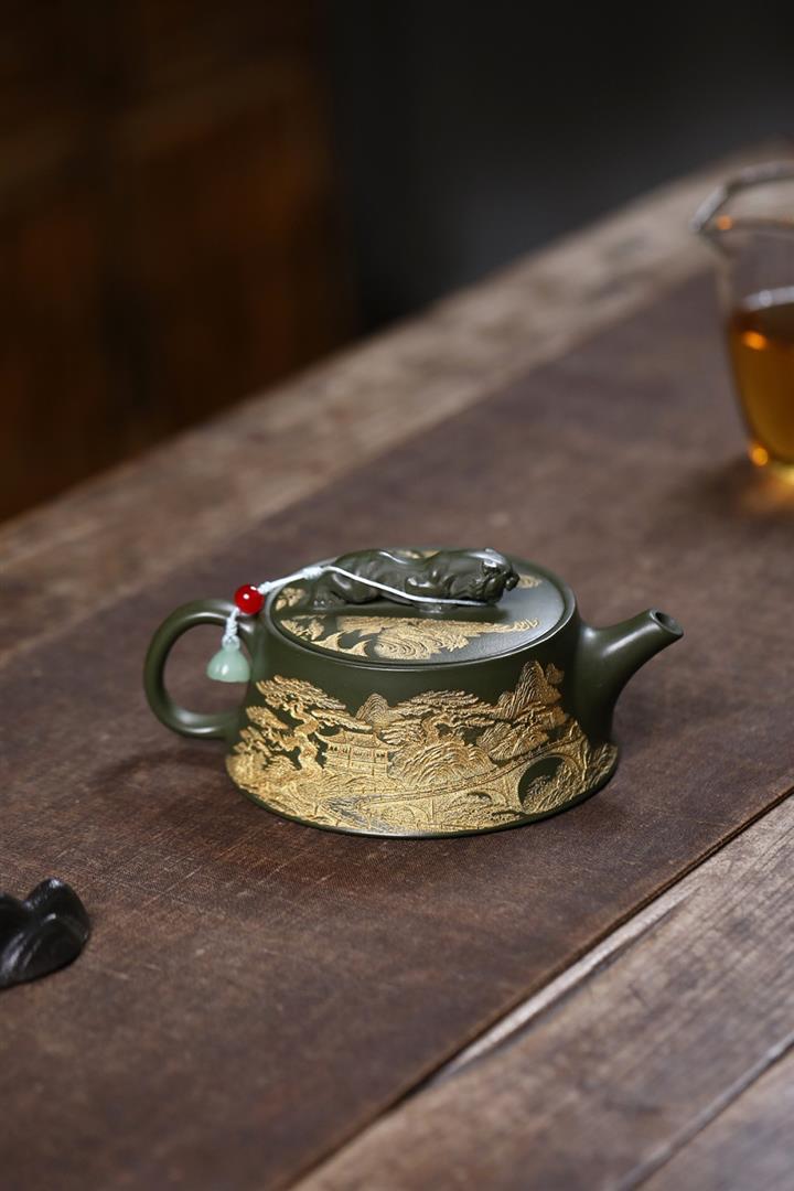 原礦綠泥臥虎藏龍內浮雕茶壺POT7844