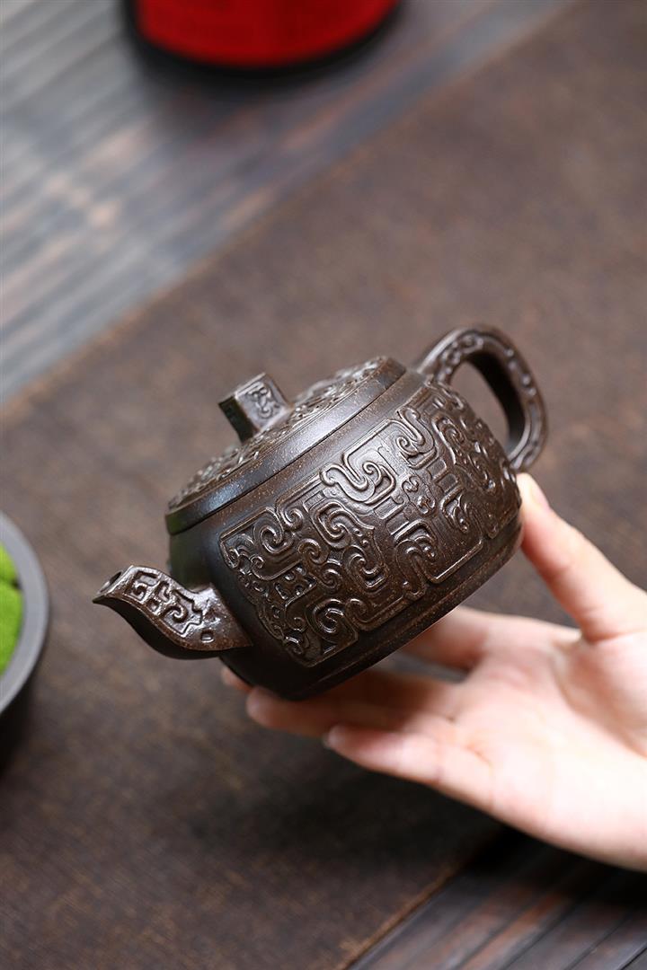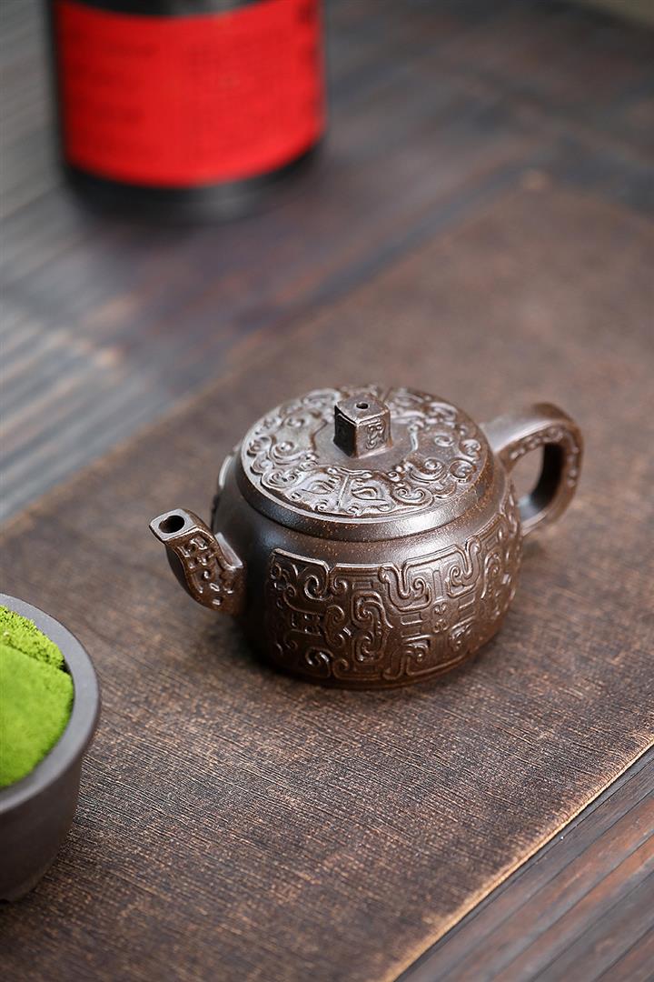 200cc原礦沈香泥柴燒天圓地方茶壺POT8435