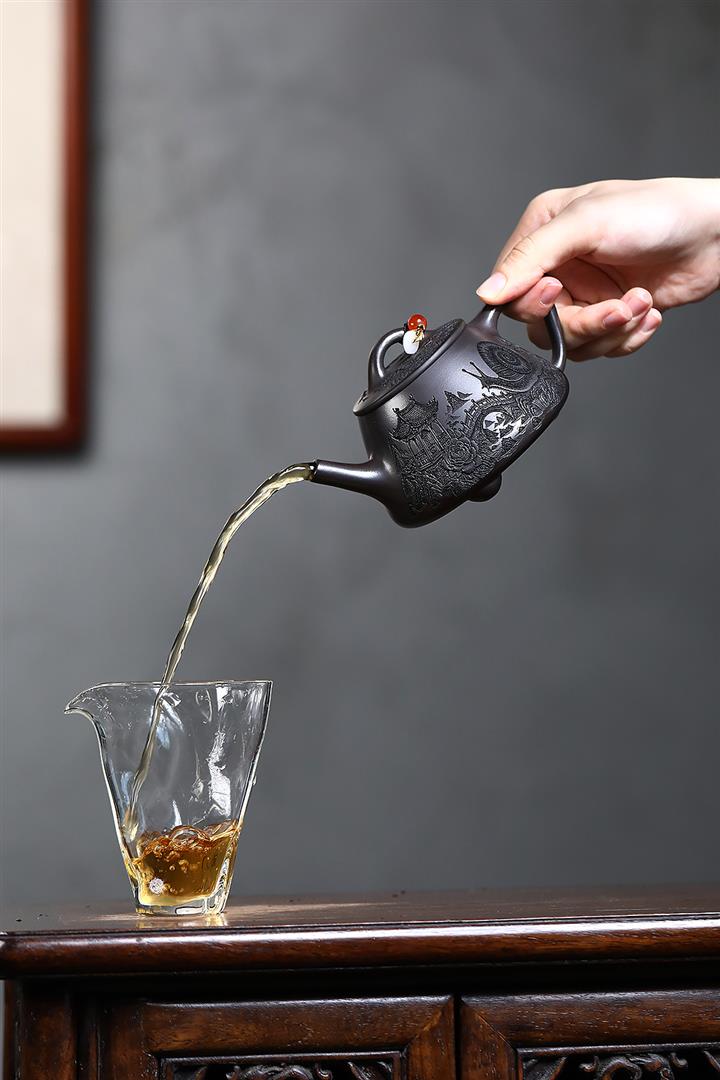 【作品介紹】此款壺形線條流暢,壺把,壺嘴,壺身壹氣呵成栩栩如生,是收藏把玩的好壺,泥料色澤古樸典雅,日久使用,漸露鋒芒,養成變化快,溫潤莊重,用其泡茶,使用的年代久,壺身就溫潤,泡出來的茶湯也就醇郁芳馨。