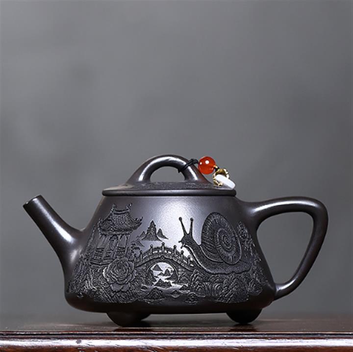 原礦降坡泥刻繪筋紋荷趣茶壺POT7748
