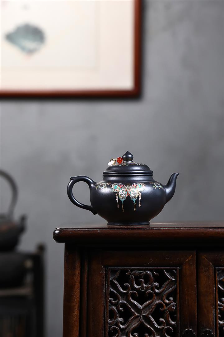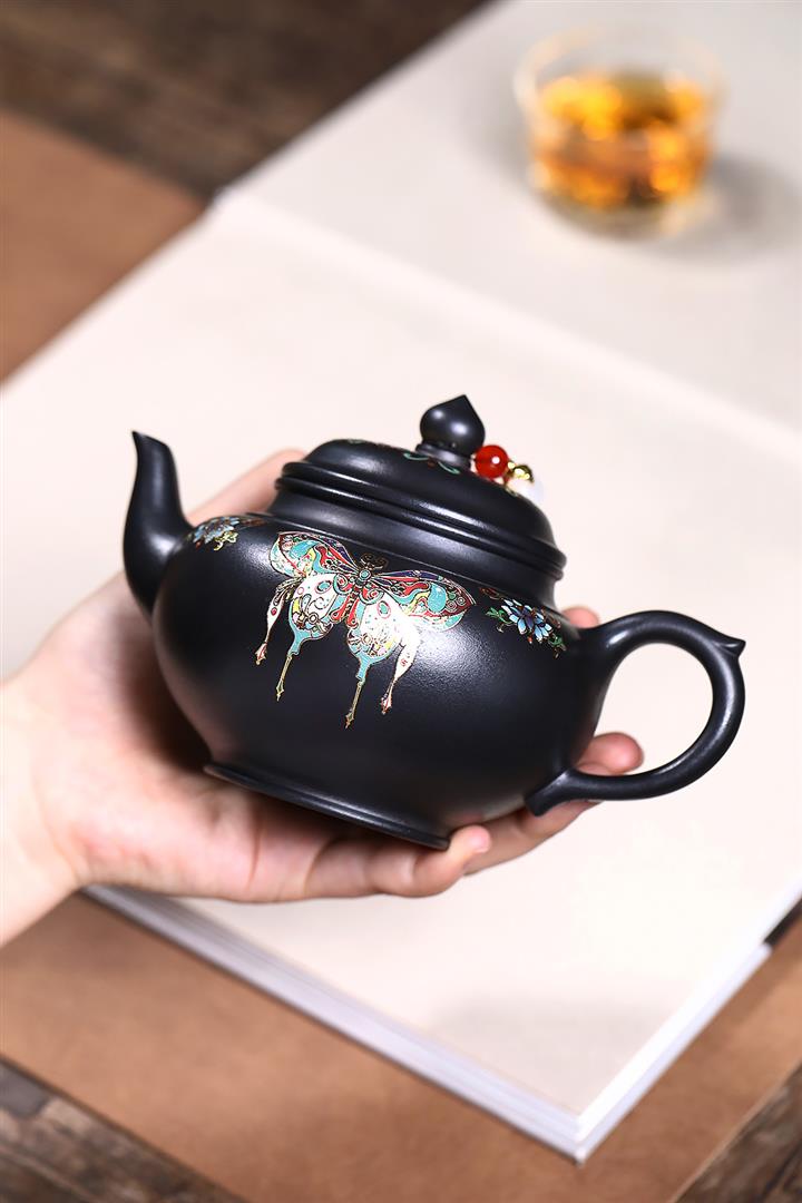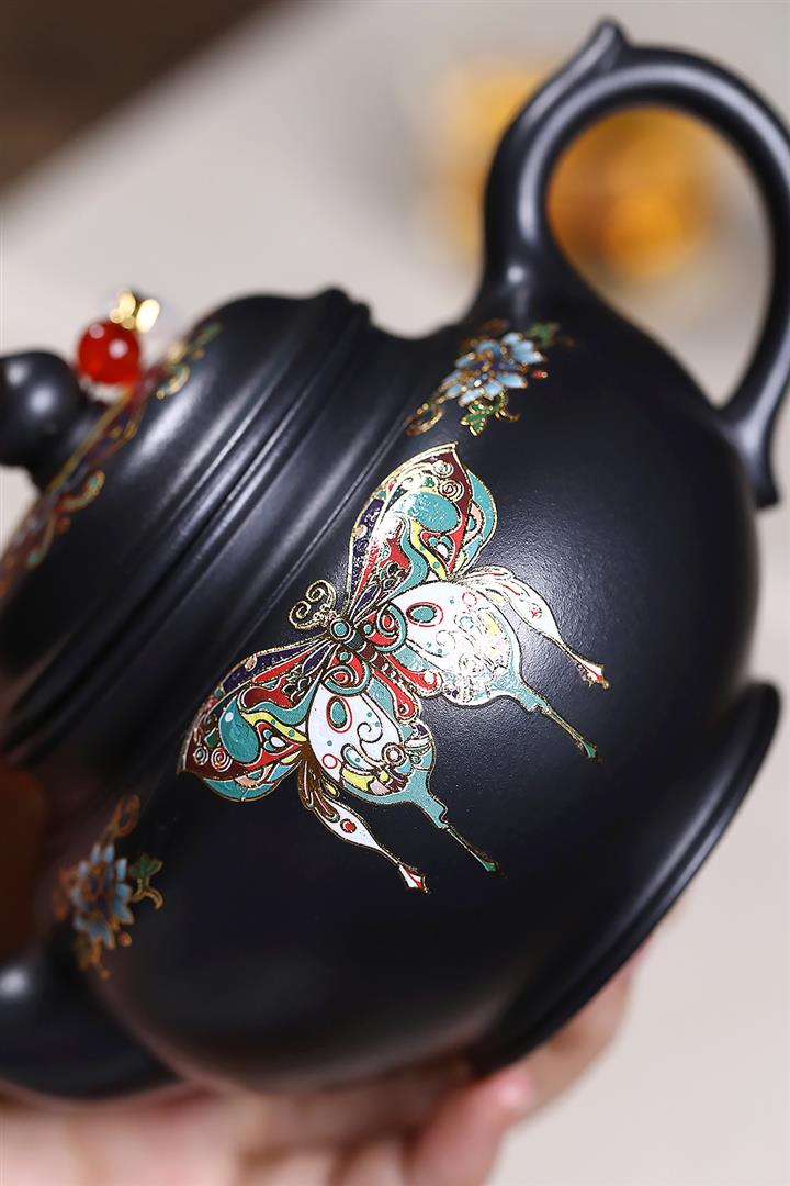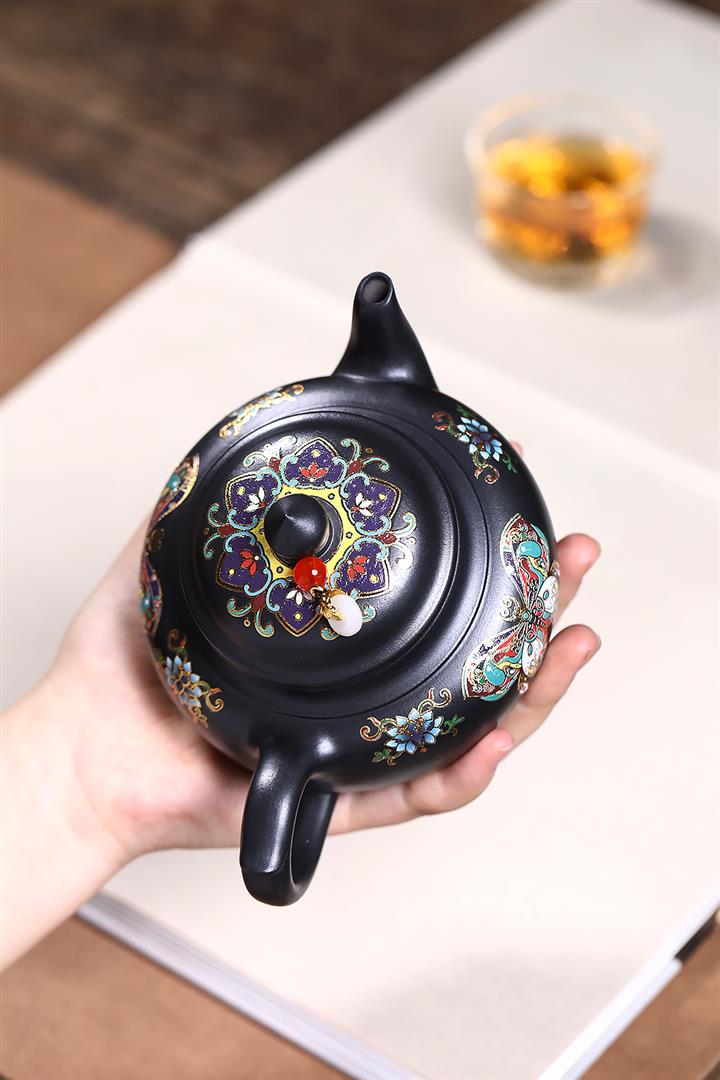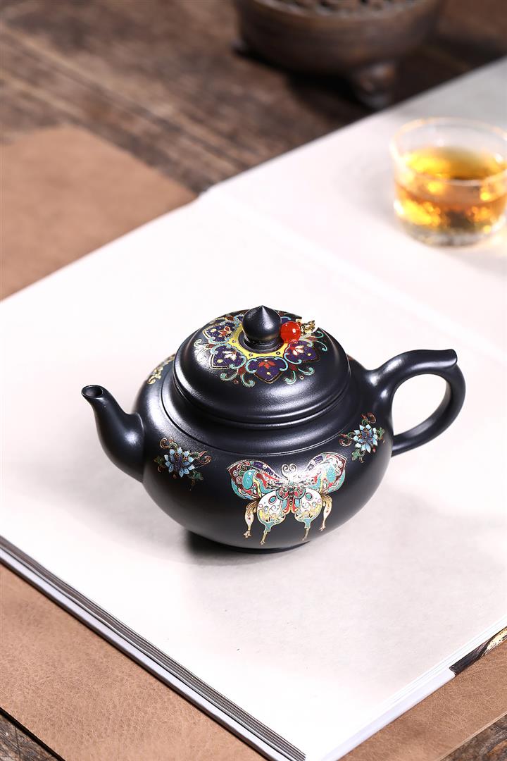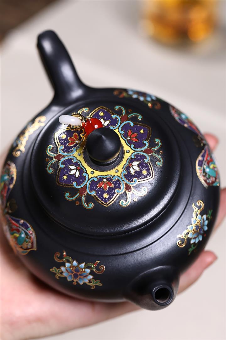 原礦玄鐵石黃琺瑯笑櫻泡茶壺POT7853