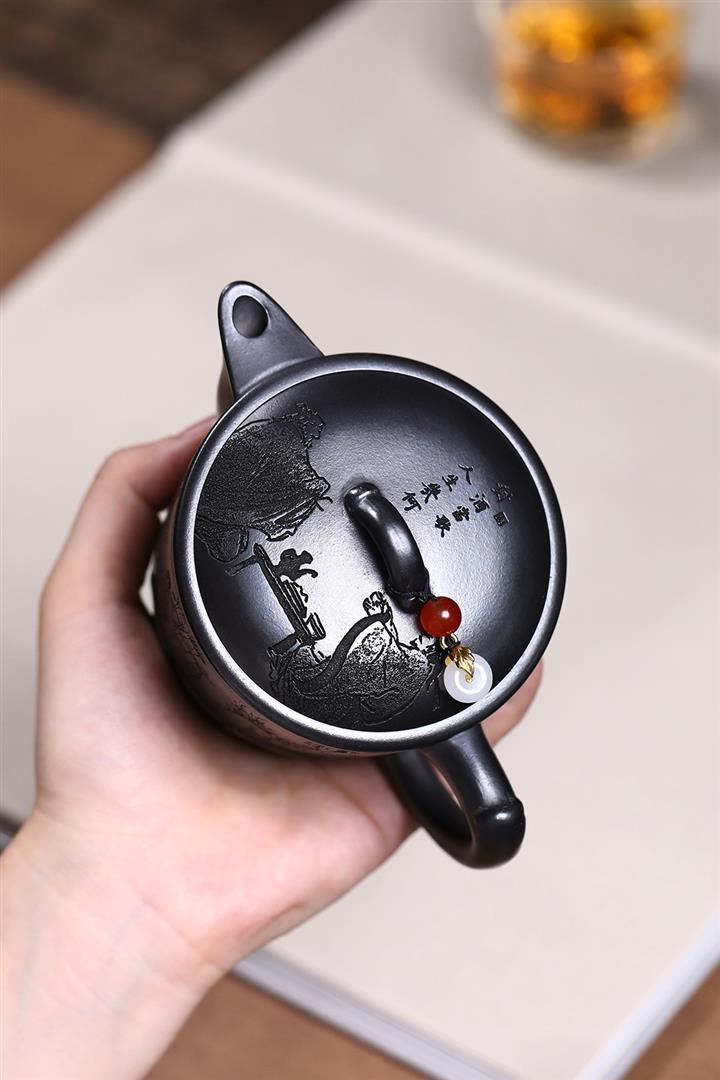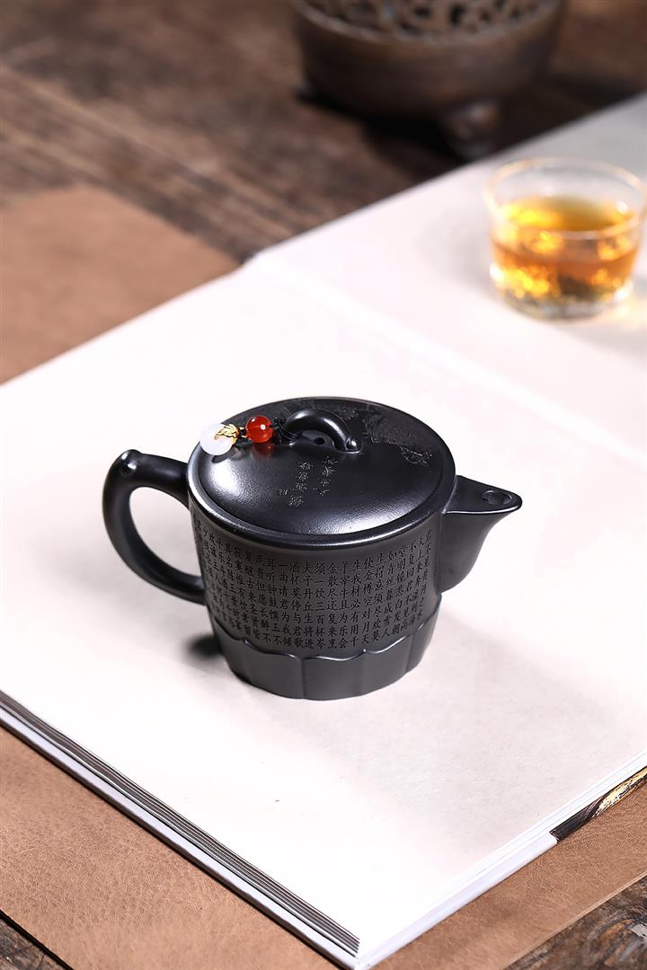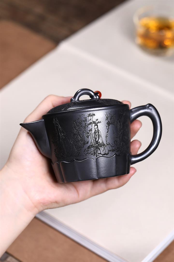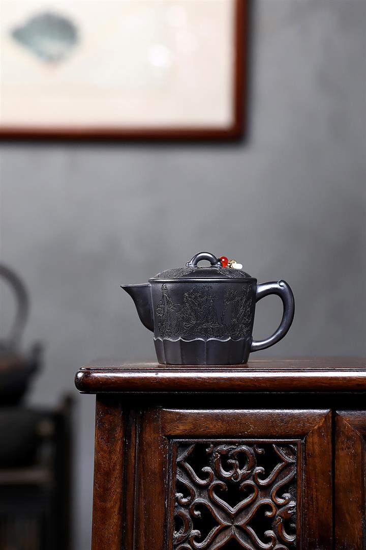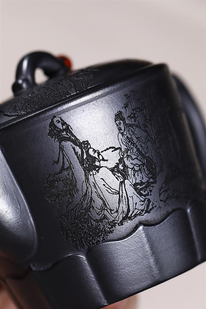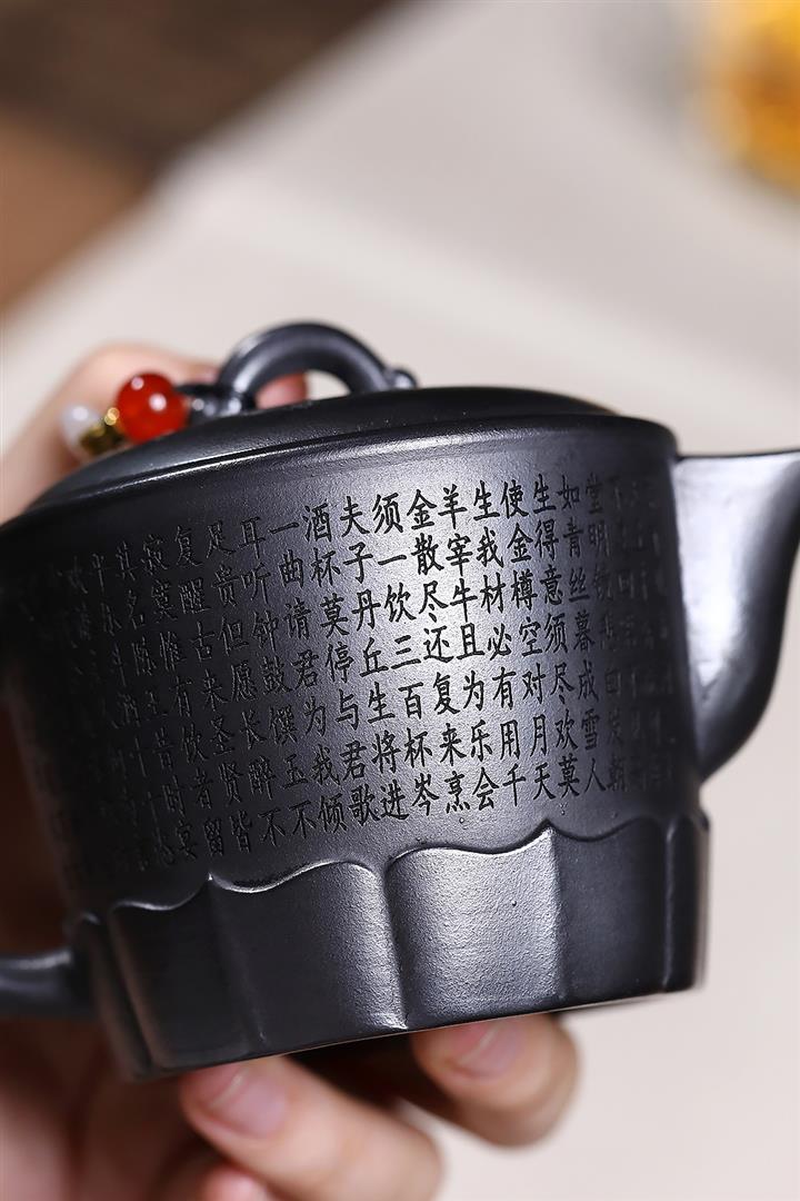 原礦沈香泥描金浮雕宮燈茶壺POT7217