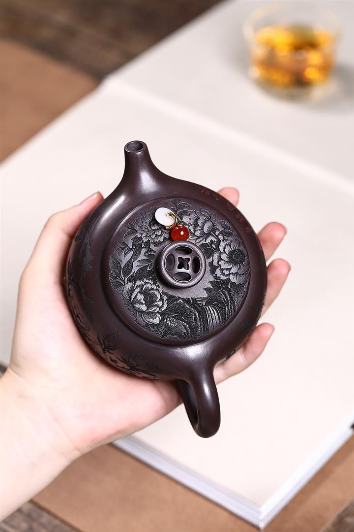 【作品介紹】此款壺形線條流暢,壺把,壺嘴,壺身壹氣呵成栩栩如生,是收藏把玩的好壺,泥料色澤古樸典雅,日久使用,漸露鋒芒,養成變化快,溫潤莊重,用其泡茶,使用的年代久,壺身就溫潤,泡出來的茶湯也就醇郁芳馨。