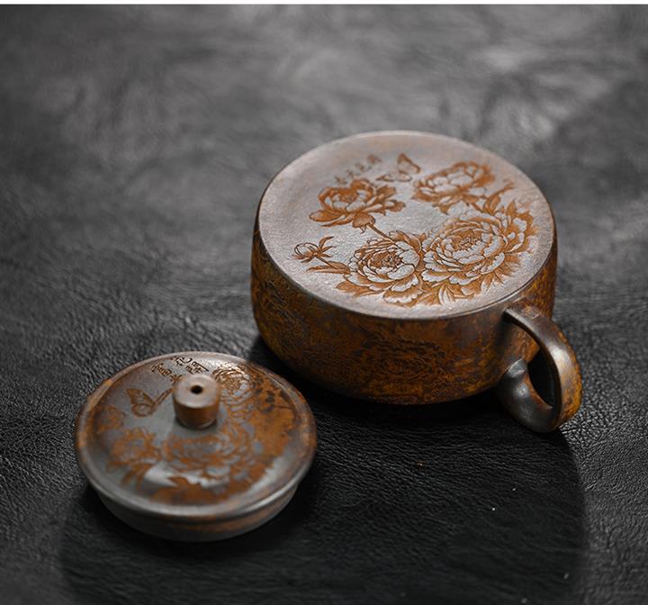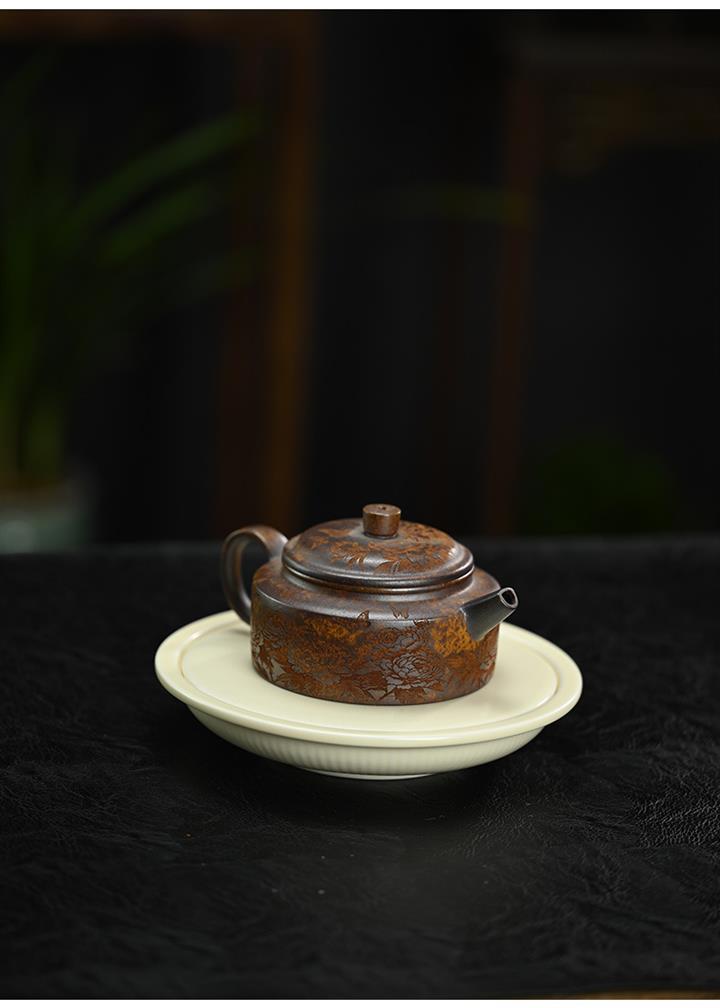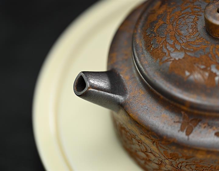 原礦段泥柴燒刻繪德鐘茶壺POT7864