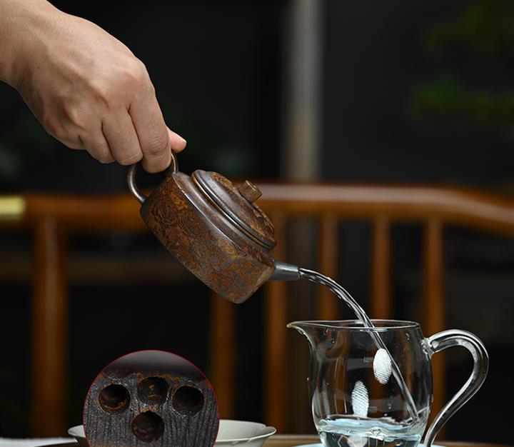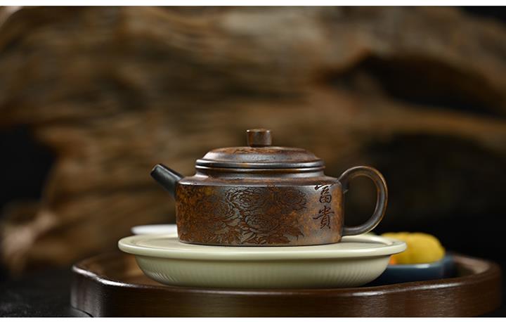 【泥料特點】砂土氣重,似淳實農民,日久使用,漸露鋒芒,養成變化,溫潤莊重。紫砂是壹種雙重氣孔結構的多孔性材質,氣孔微細,密度高。用紫砂壺沏茶,不失原味,且香不渙散,得茶之真香真味。紫砂使用越久,壺身色澤越發光亮照人,氣韻溫雅。紫砂壺長久使用器身會因撫摸擦拭,變得越發溫潤光澤。