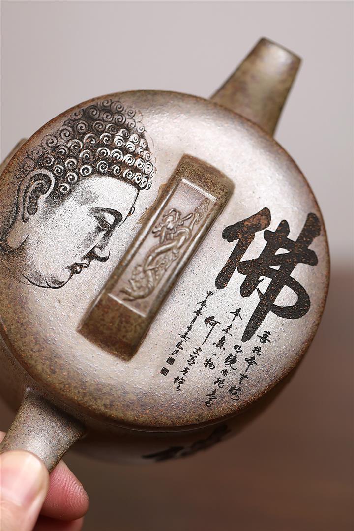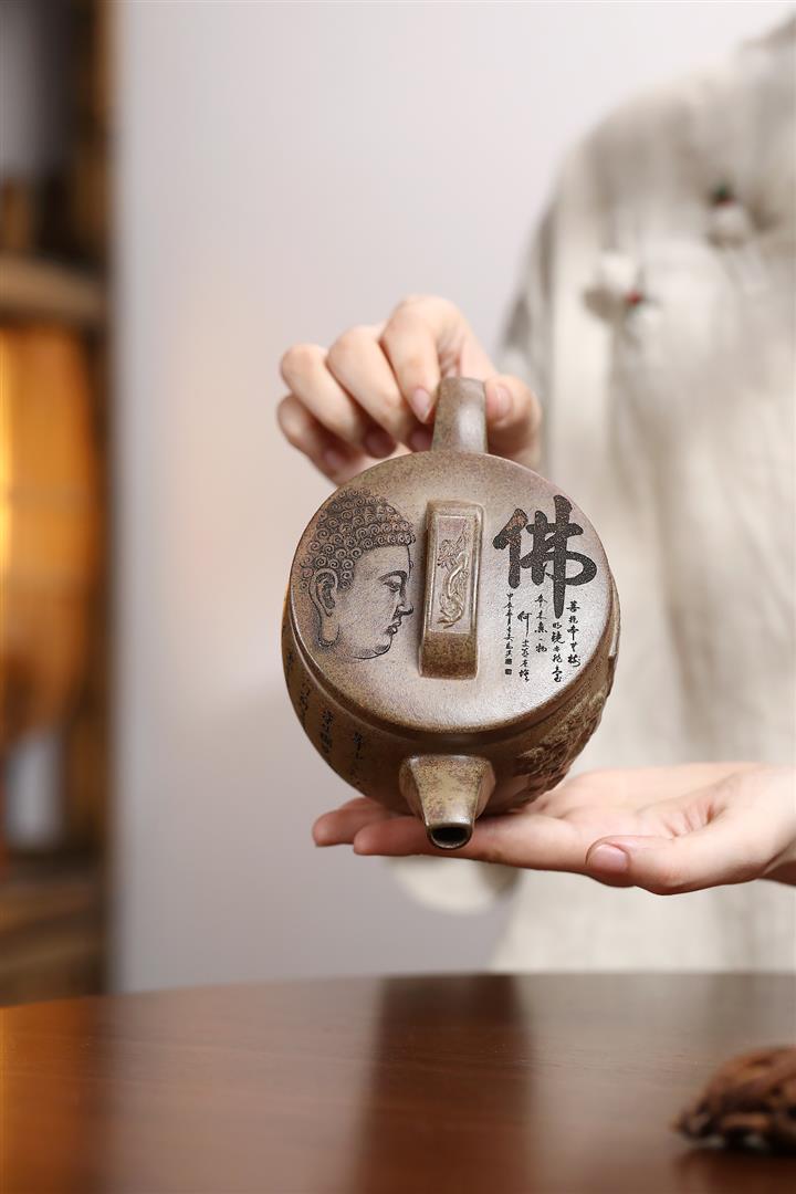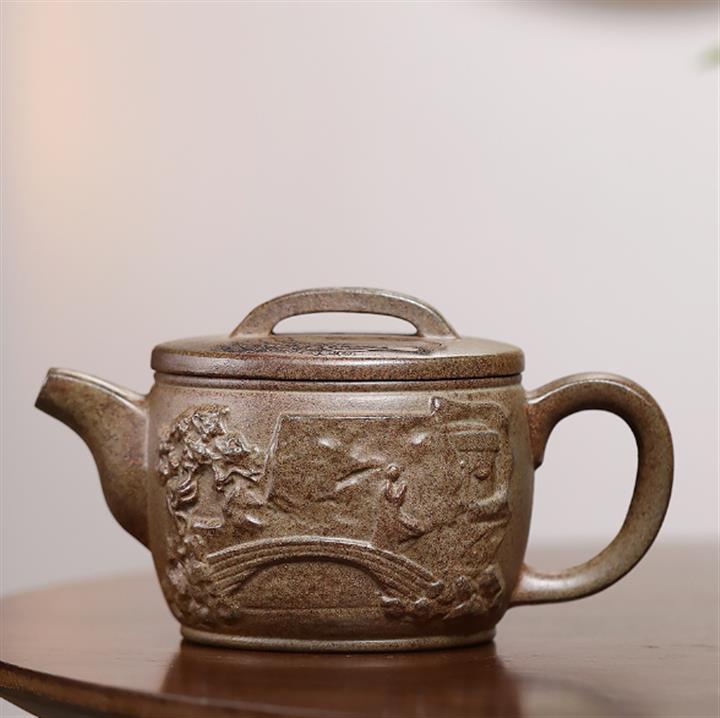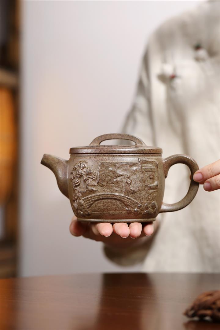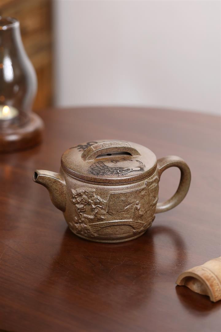 365cc原礦紫泥刻繪山水仿古茶壺POT8580