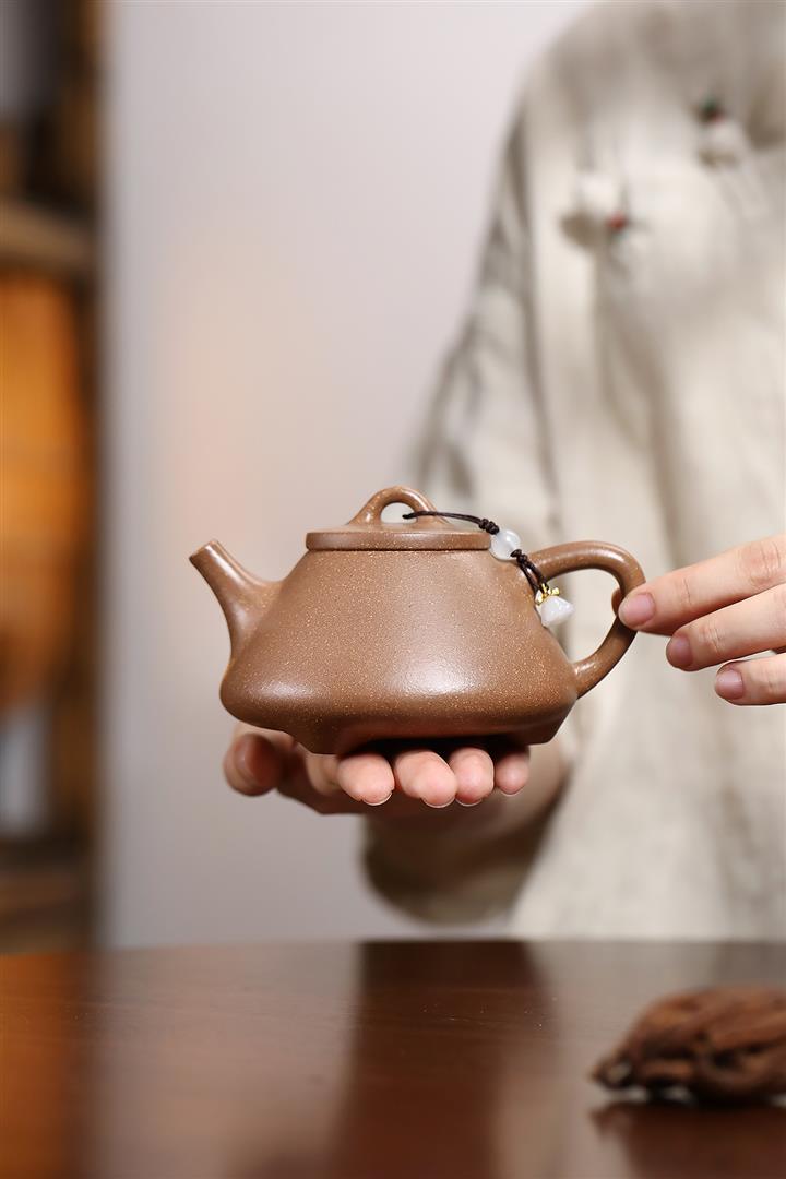 【泥料特點】砂土氣重,似淳實農民,日久使用,漸露鋒芒,養成變化,溫潤莊重。紫砂是壹種雙重氣孔結構的多孔性材質,氣孔微細,密度高。用紫砂壺沏茶,不失原味,且香不渙散,得茶之真香真味。紫砂使用越久,壺身色澤越發光亮照人,氣韻溫雅。紫砂壺長久使用器身會因撫摸擦拭,變得越發溫潤光澤。
