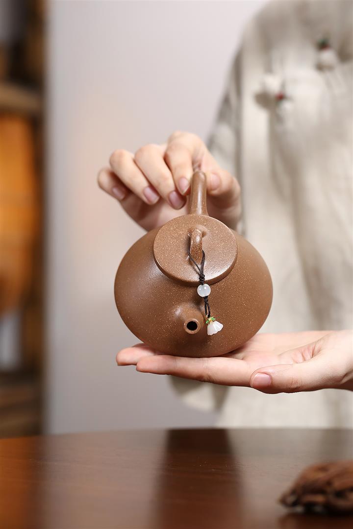 【作品介紹】此款壺形線條流暢,壺把,壺嘴,壺身壹氣呵成栩栩如生,是收藏把玩的好壺,泥料色澤古樸典雅,日久使用,漸露鋒芒,養成變化快,溫潤莊重,用其泡茶,使用的年代久,壺身就溫潤,泡出來的茶湯也就醇郁芳馨。