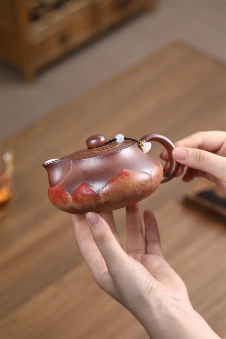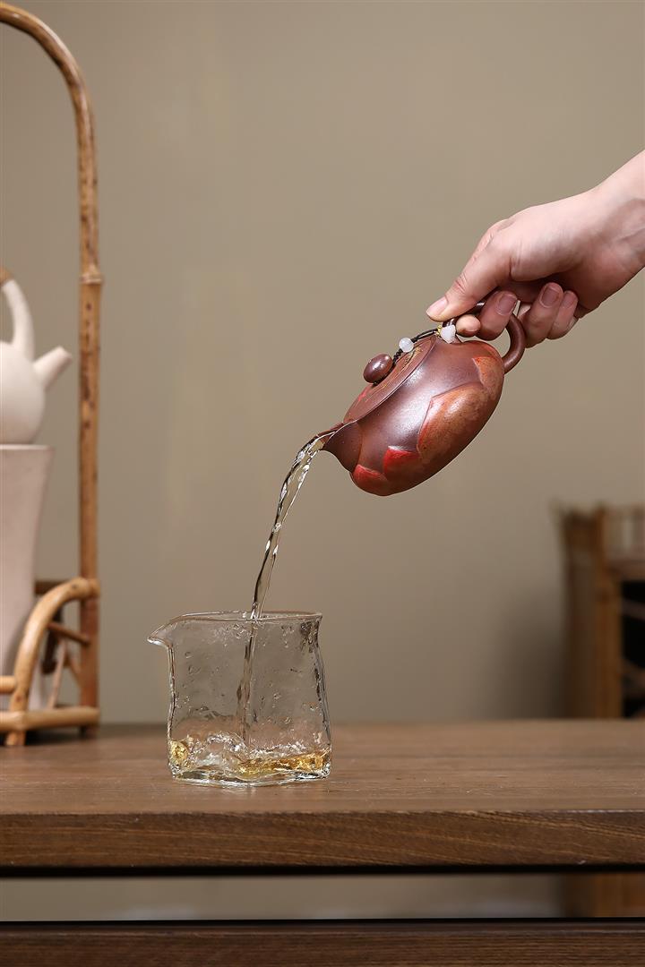 【泥料特點】砂土氣重,似淳實農民,日久使用,漸露鋒芒,養成變化,溫潤莊重。紫砂是壹種雙重氣孔結構的多孔性材質,氣孔微細,密度高。用紫砂壺沏茶,不失原味,且香不渙散,得茶之真香真味。紫砂使用越久,壺身色澤越發光亮照人,氣韻溫雅。紫砂壺長久使用器身會因撫摸擦拭,變得越發溫潤光澤。