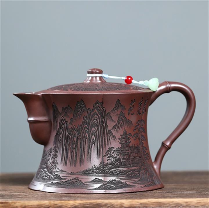 680cc原礦石紅泥滿刻春亭苑景茶壺POT8335