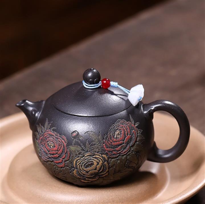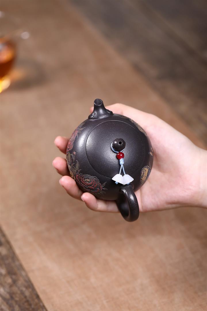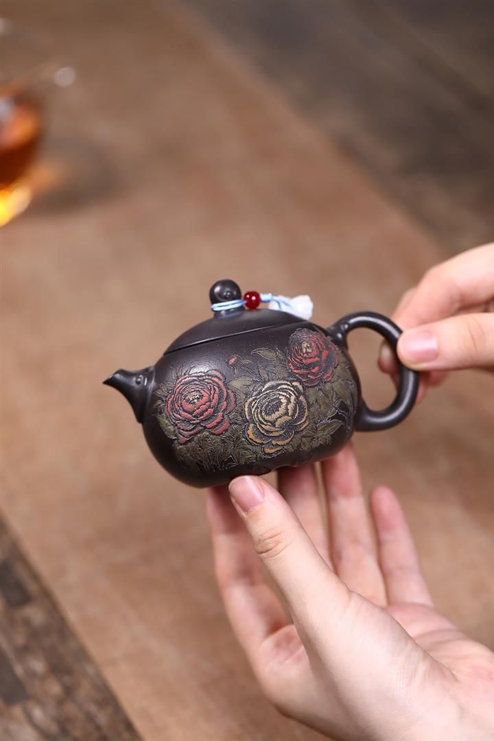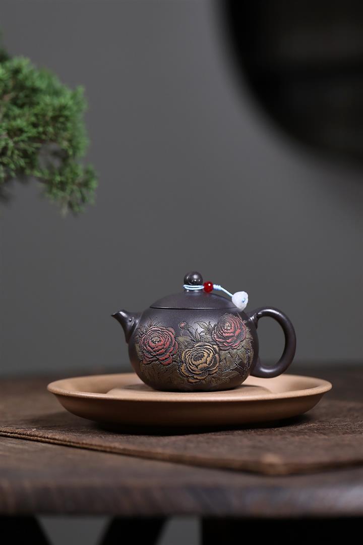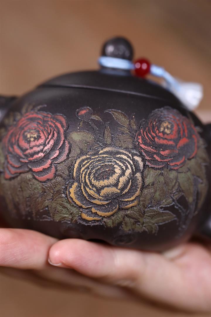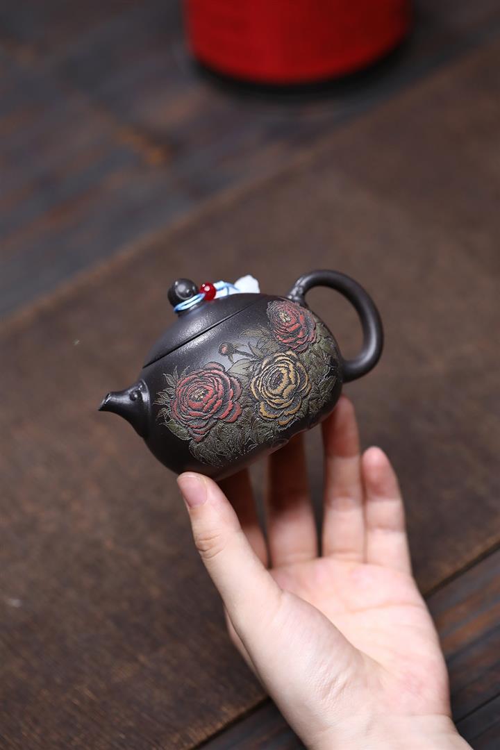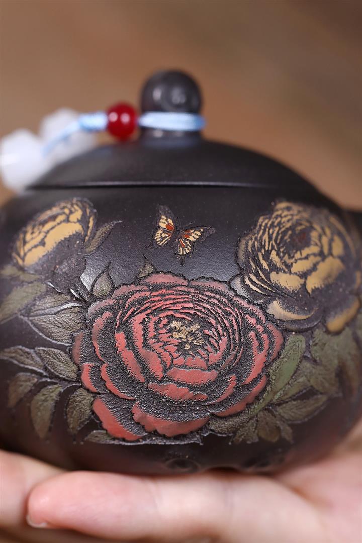 430cc原礦高溫段泥花開富貴潘壺泡茶壺POT9039