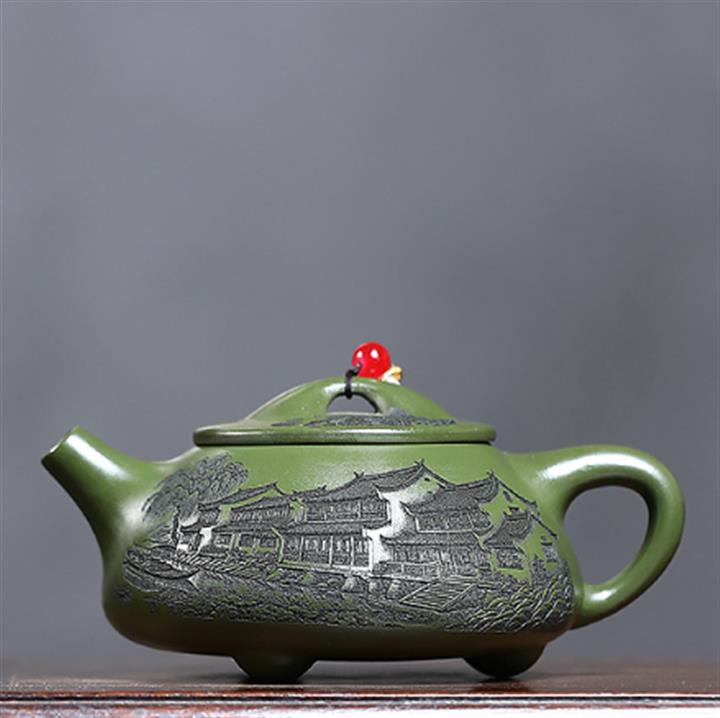 170cc原礦綠泥描金寒江泡茶壺POT9166