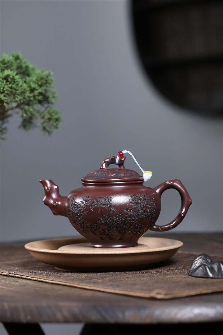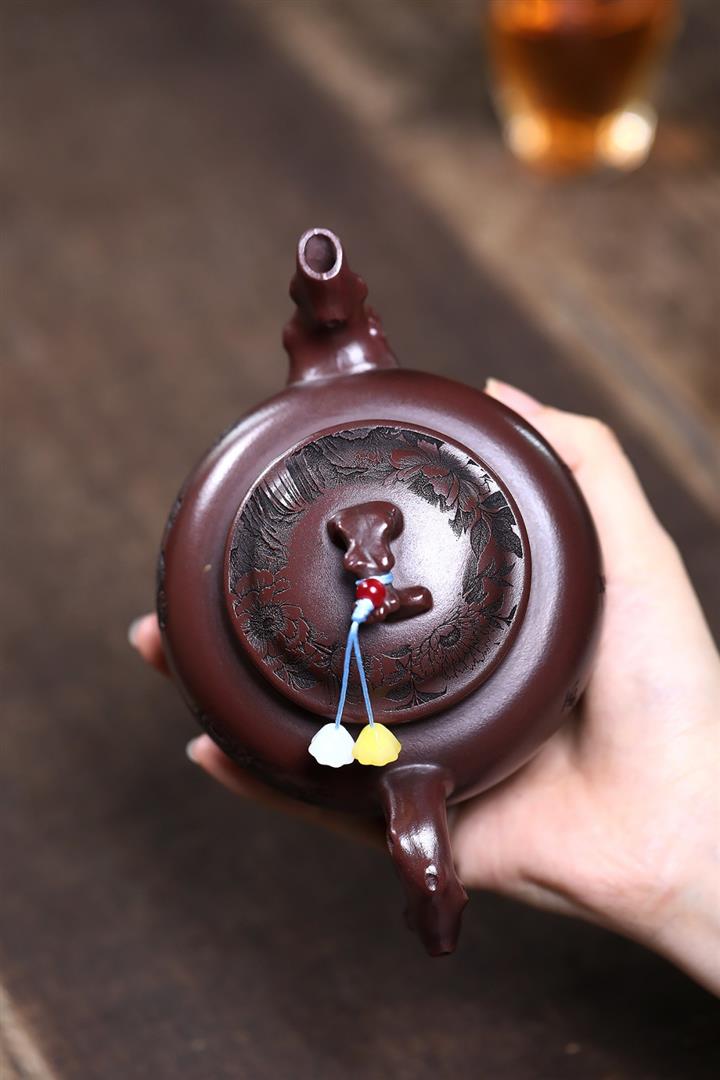 【作品介紹】此款壺形線條流暢,壺把,壺嘴,壺身壹氣呵成栩栩如生,是收藏把玩的好壺,泥料色澤古樸典雅,日久使用,漸露鋒芒,養成變化快,溫潤莊重,用其泡茶,使用的年代久,壺身就溫潤,泡出來的茶湯也就醇郁芳馨。